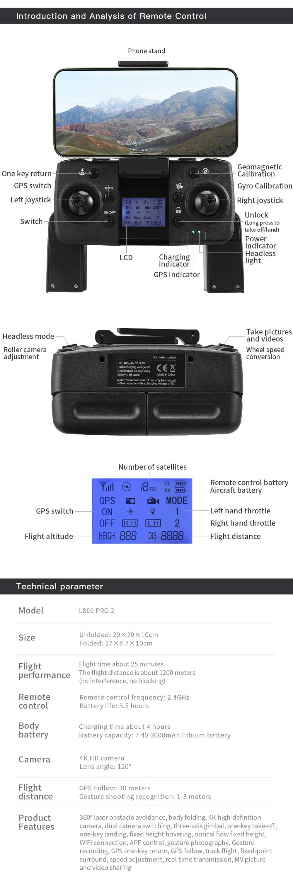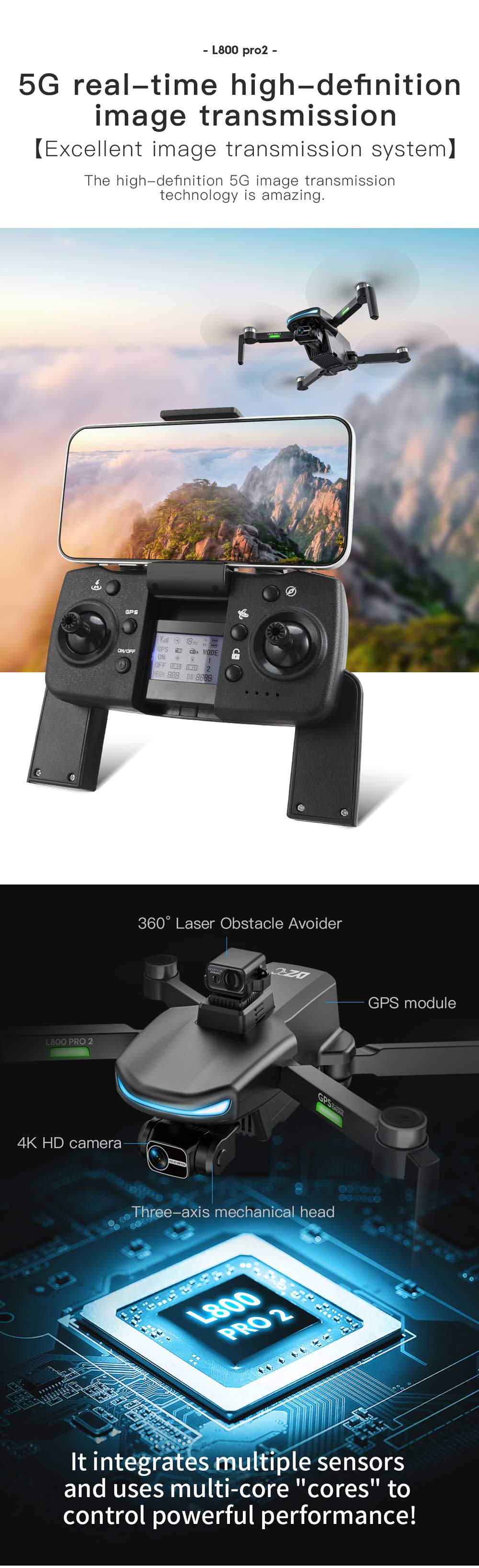 4K Drone 3-Axis Gimbal L800 Pro2 GPS Dual HD Drones 360° Obstacle Avoidance 5G WiFi RC Quadcopter