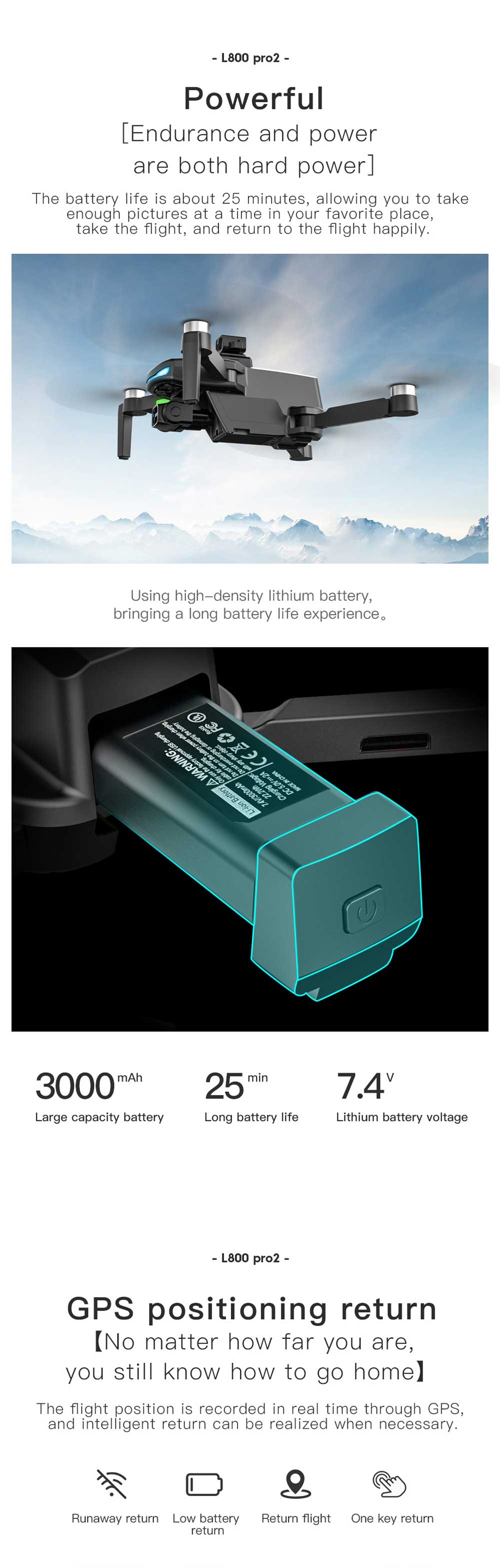 - Camera: 3-axis electronically stabilized gimbal 4K camera