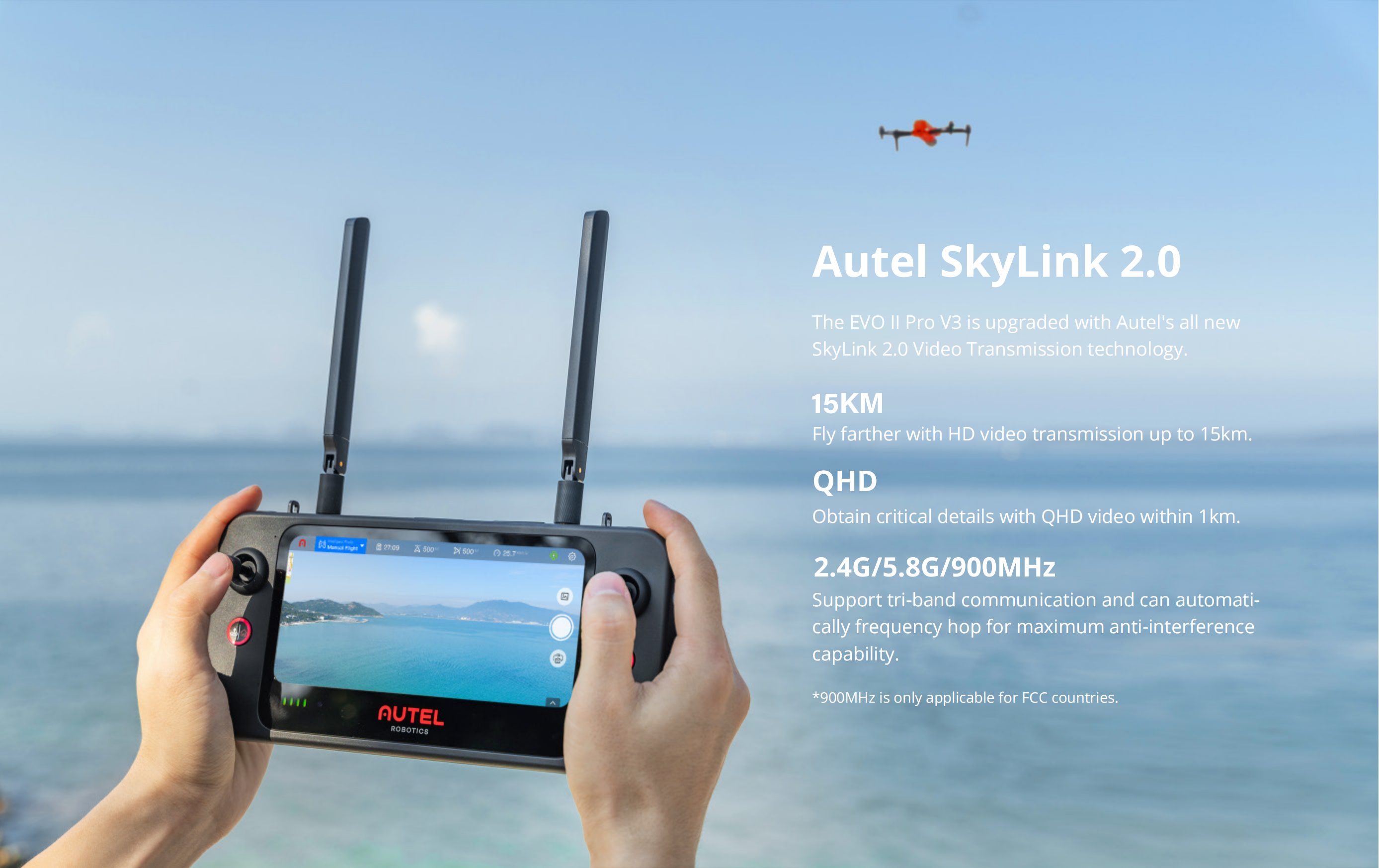 The EVO II PRO V3 is upgraded with Autel's all new skylink 2.0 Video Transmission technology.