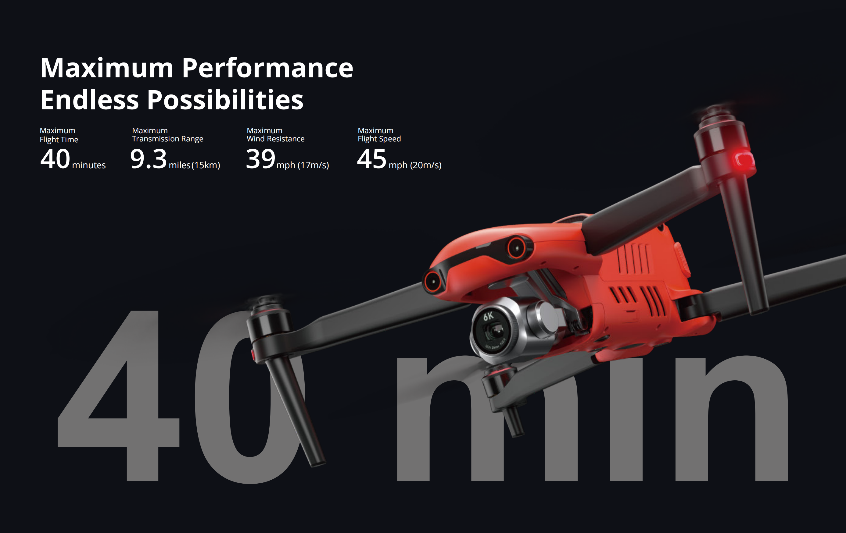 40 Min Maximum Flight Time 20m/s Maximum Flight Speed