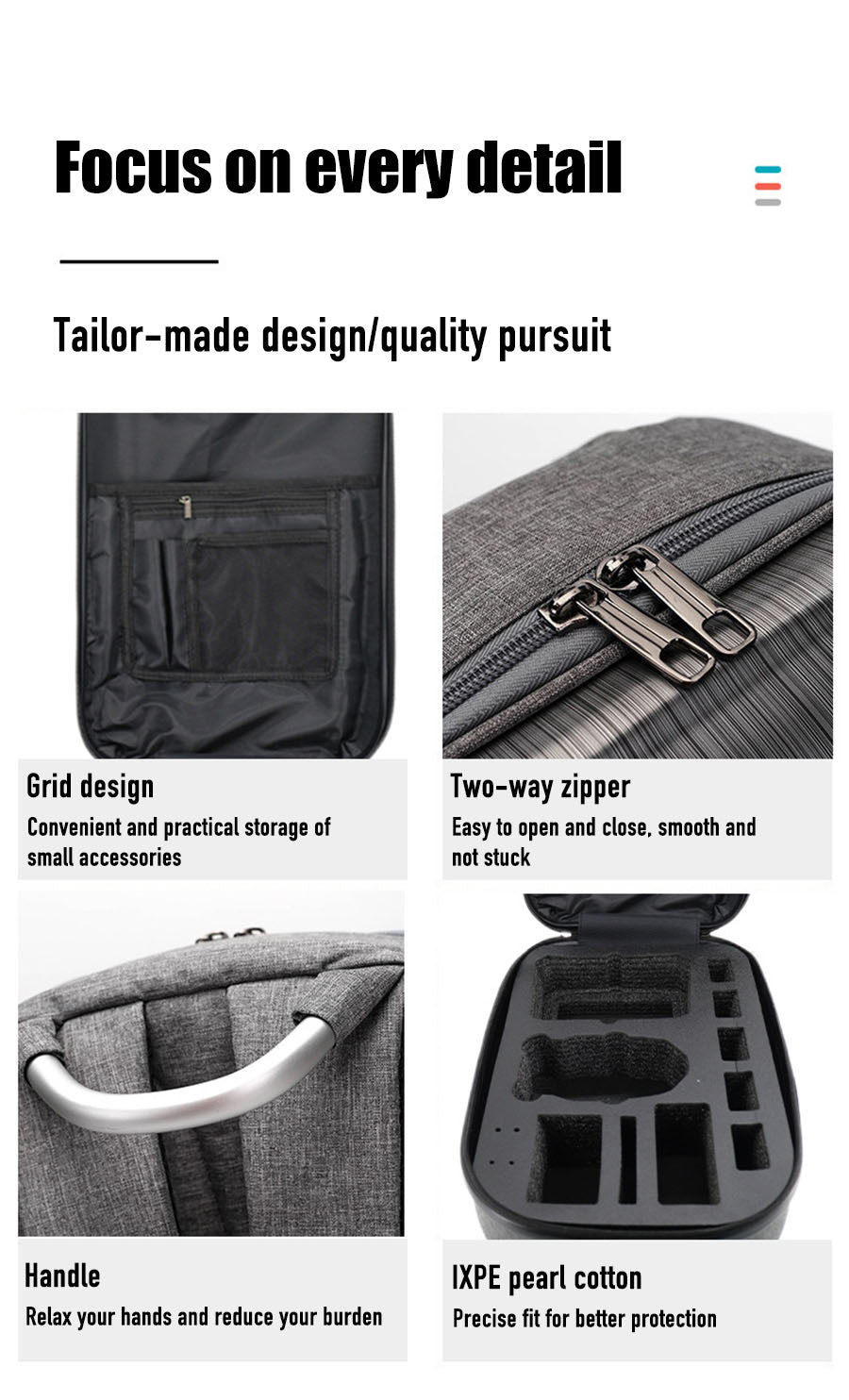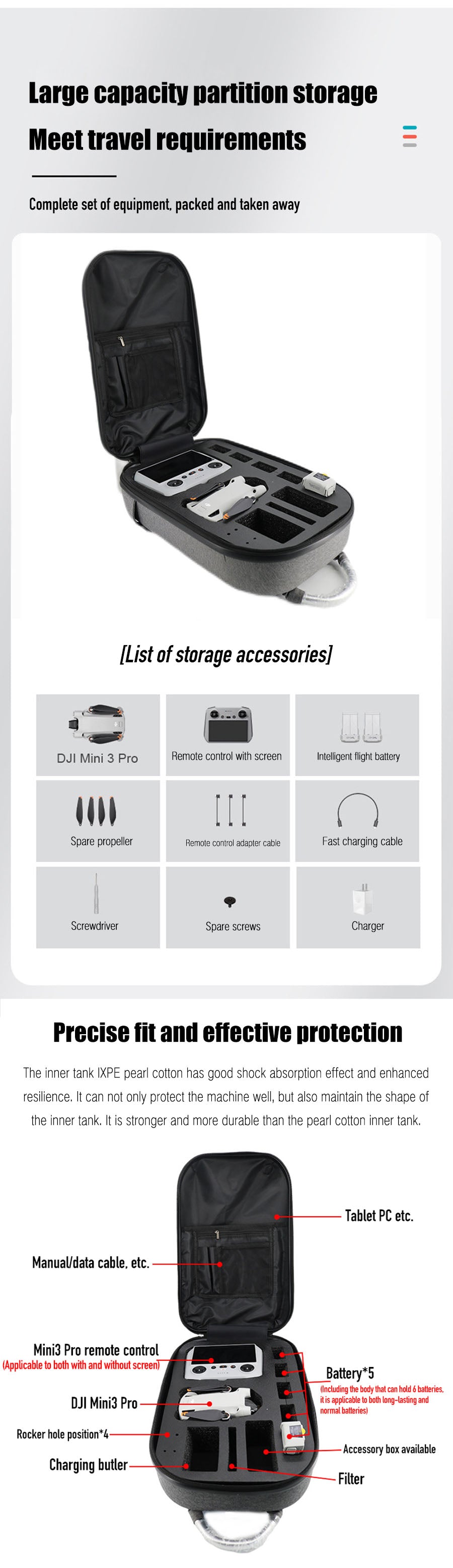 1. Simple design and quality: This Storage bag Tailor-made for DJI Mini3 Pro, simple and stylish, pressure-resistant and wear-resistant, more practical and convenient