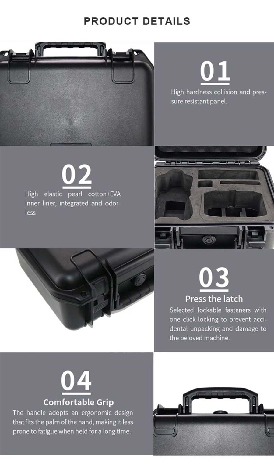 1. Simple design and quality: This DJI AIR 3 storage bag Made of ABS plastic, high-precision mold injection molding shell, sealing ring design at the junction of the upper and lower shells, anti-fall, anti-pressure, anti-impact, 1 meter waterproof
