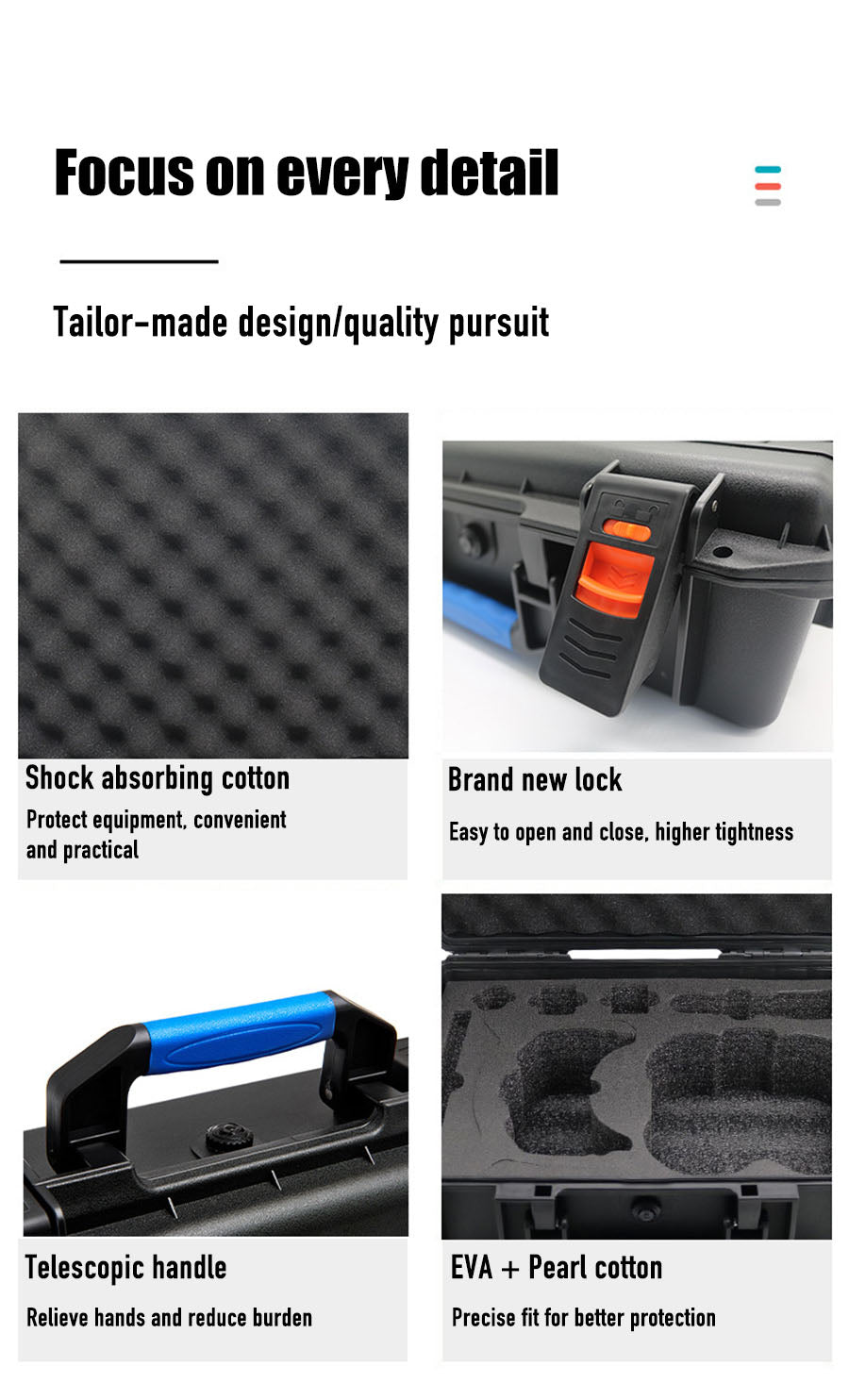 Function: waterproof, shock-resistant, wear-resistant, stowable, explosion-proof case