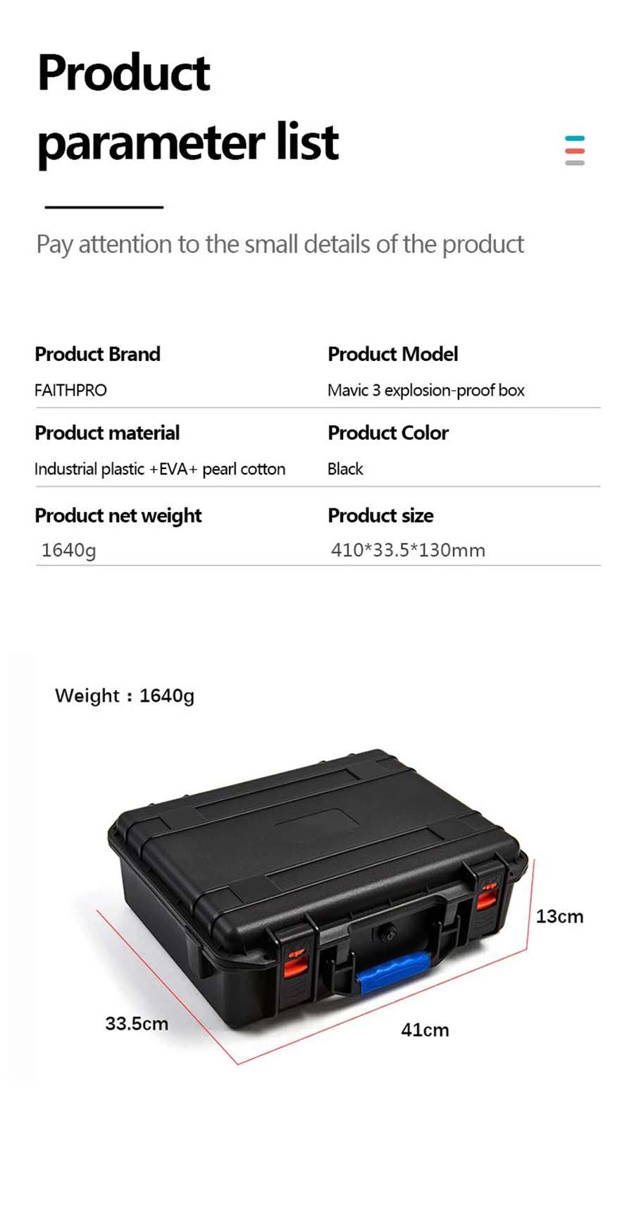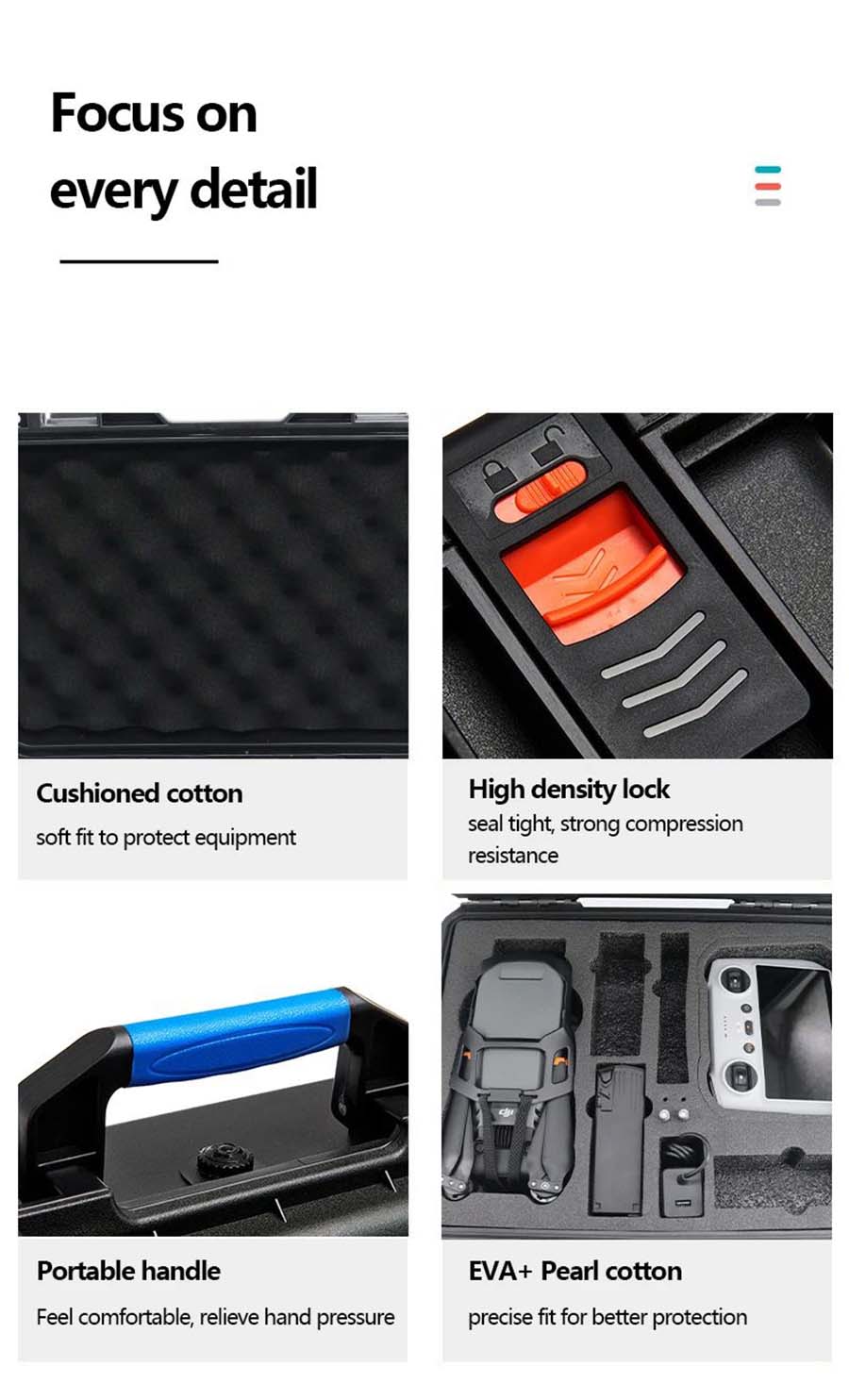 1. Simple design and quality: This DJI Mavic3 Classic storage bag Made of high-quality ABS material shell, one-piece molding, pressure-resistant and wear-resistant, simple and exquisite, more practical and convenient
