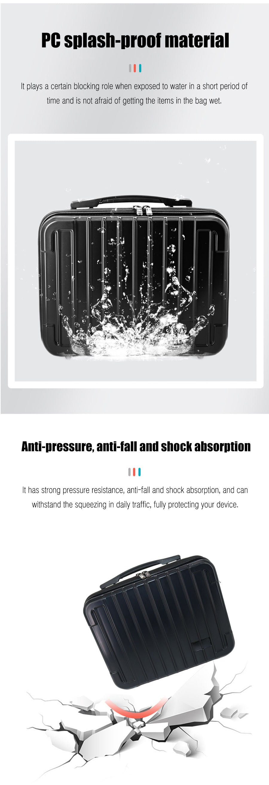 2. PC anti-splash fabric: This DJI Mavic3 Storage bag can plays a certain blocking role when exposed to water in a short period of time and is not afraid of getting the items in the bag wet.