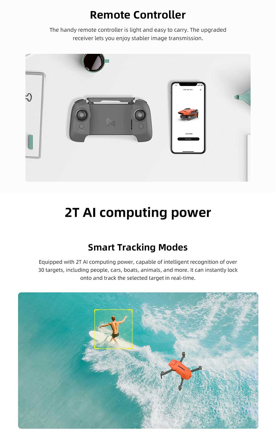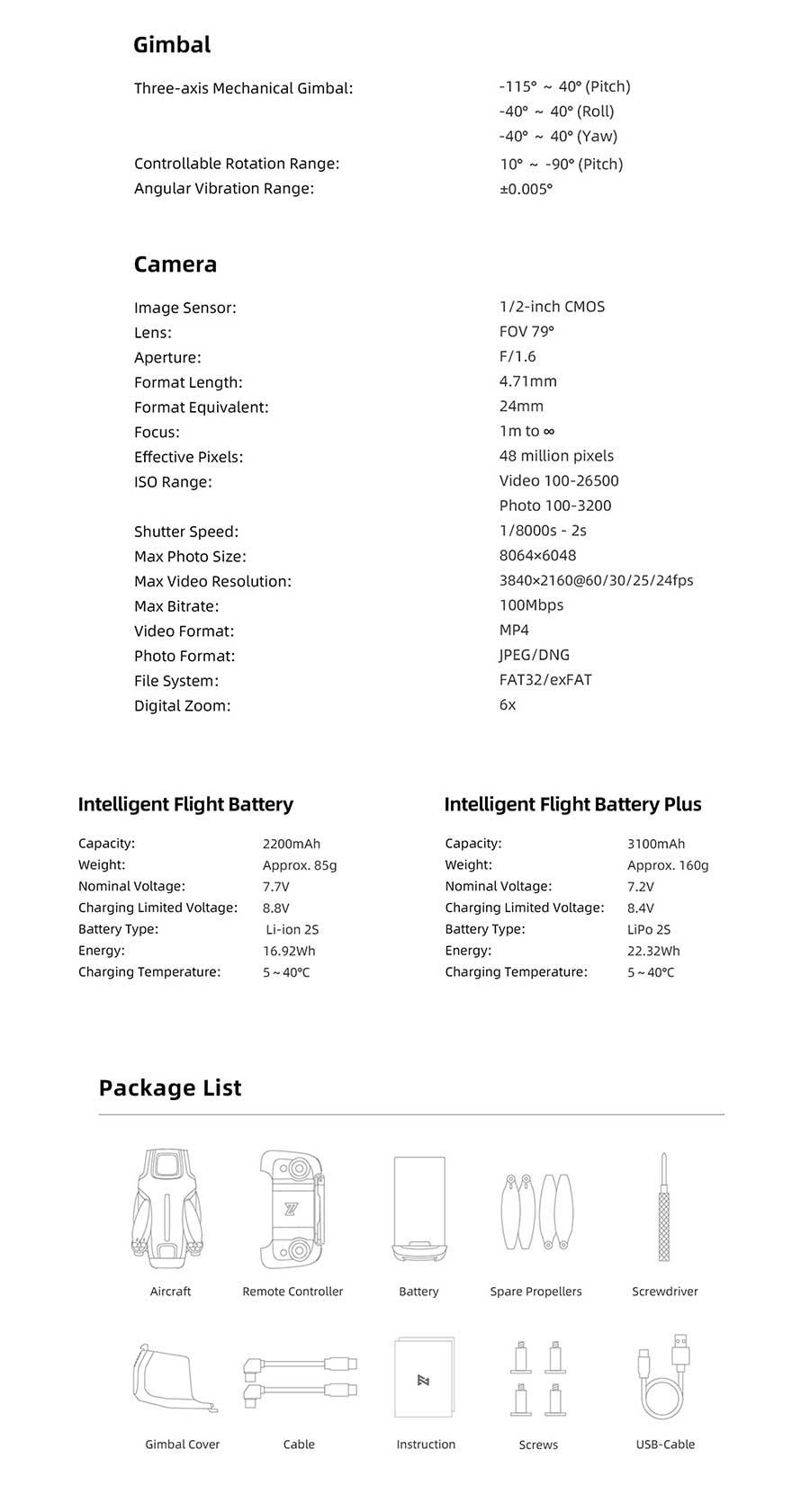 FIMI X8 MINI 3 Three-axis Mechanical Gimbal: -115°~ 40°(Pitch); -40°~ 40°(Roll); -40°~ 40°(Yaw)