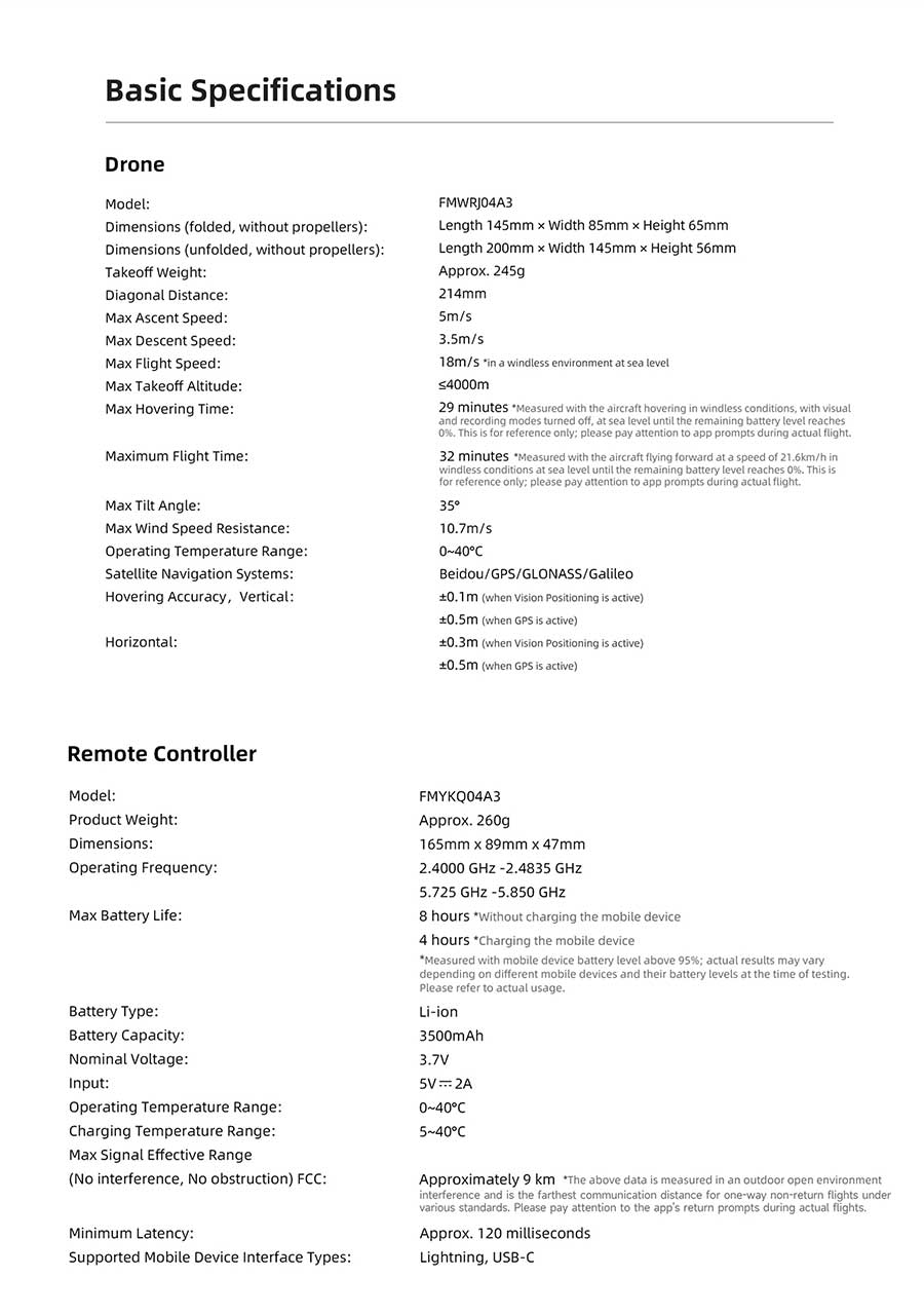 FIMI X8 MINI 3 Max Signal Effective Range (No interference, No obstruction) FCC: Approximately9 km *The above data is measured in an outdoor open environmentinterference and is the farthest communication distance for one-way non-return flights undervarious standards. Please pay attention to the app's return prompts during actual flights.