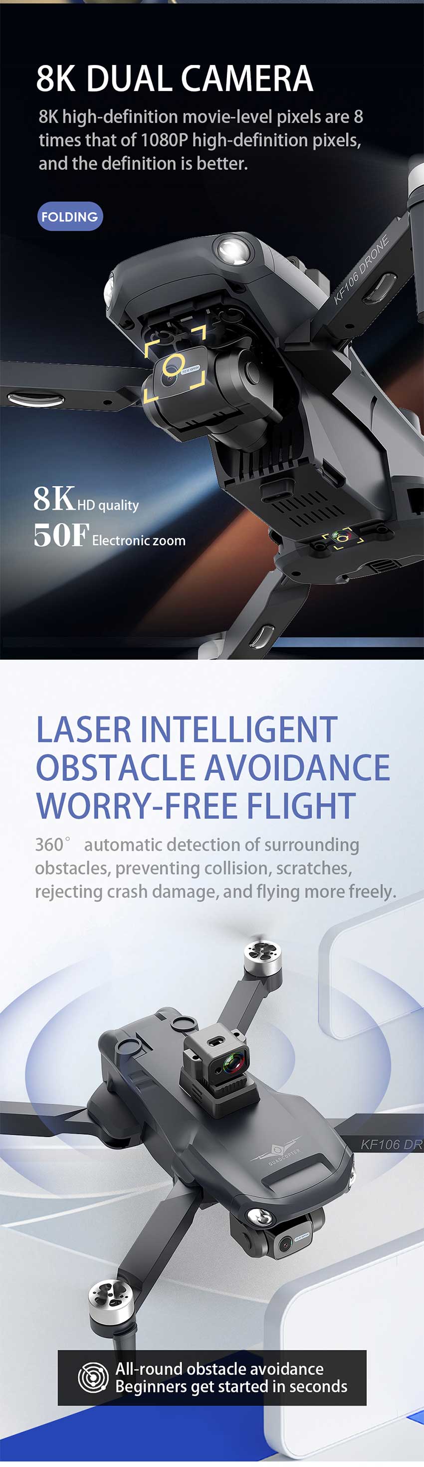 - KF106 MAX: with 360° obstacle avoidance function