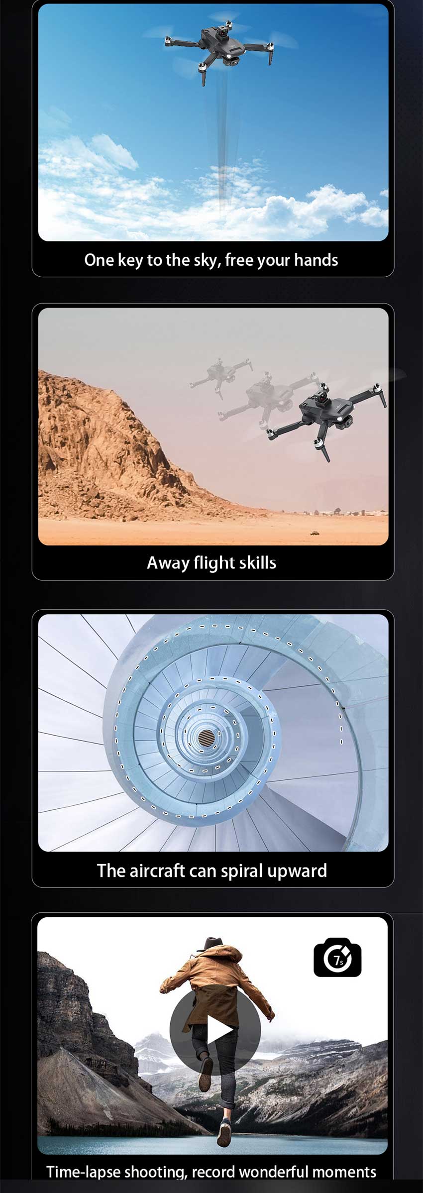 3. ①GPS intelligent follow; ②Image follow: identify the subject and automatically follow the flight
