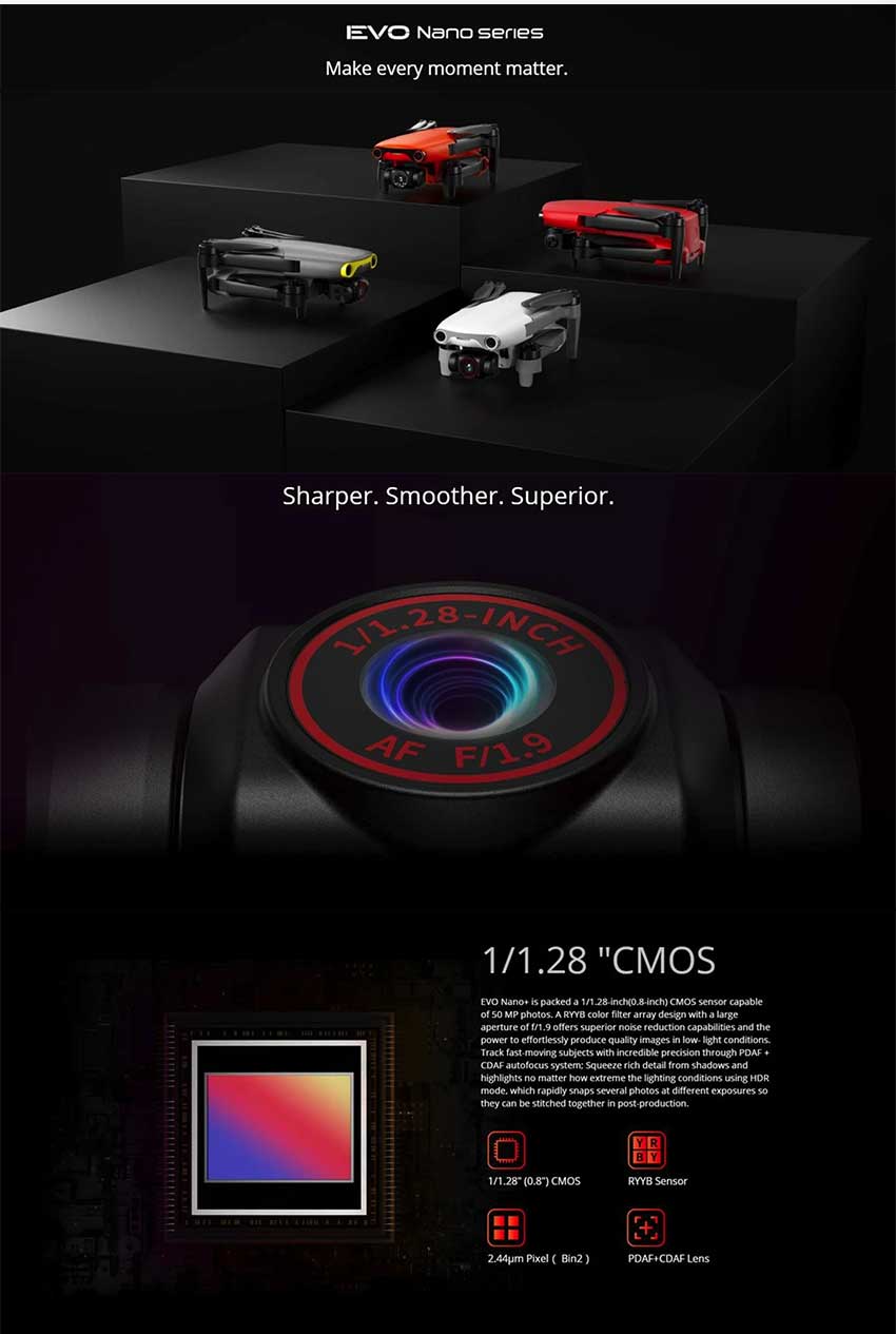 Autel EVO Nano+ with 0.8' CMOS / RYYB Sensor / 2.44um / PDAF+CDAF