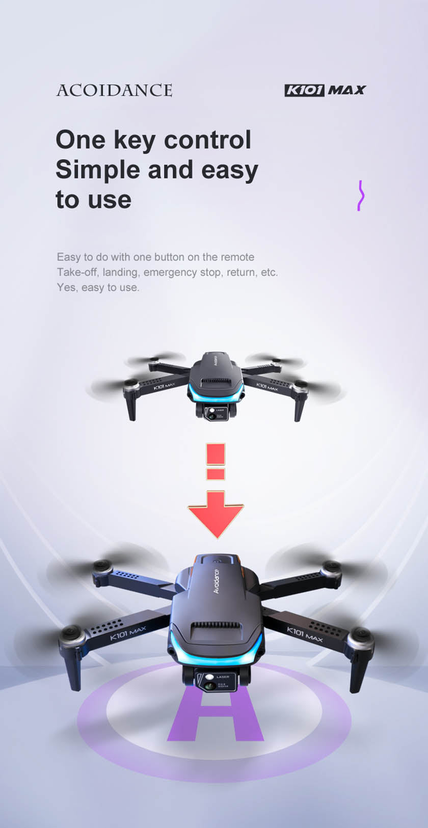 - RC function: One key takeoff / one key landing / rise / fall / left / right steering / 360 ° roll / headless mode / fast and slow gear / one key reset / fine direction adjustment