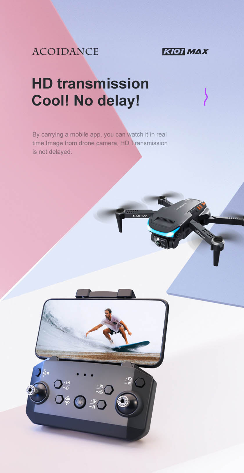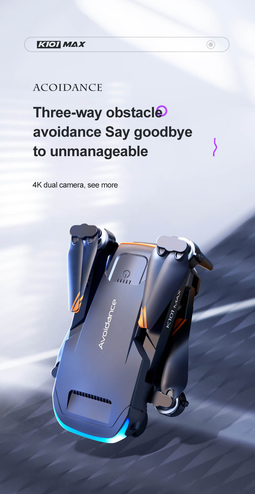 RC Drone K101MAX 4K HD Dual Camera Optical Flow Positioning ESC 3-Way Obstacle Avoidance Folding RC Quadcopter