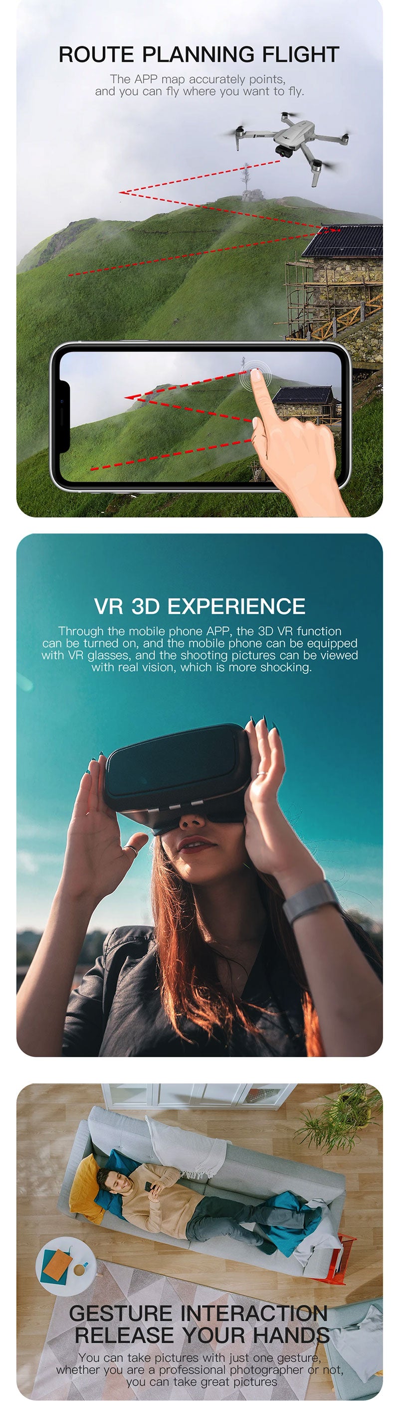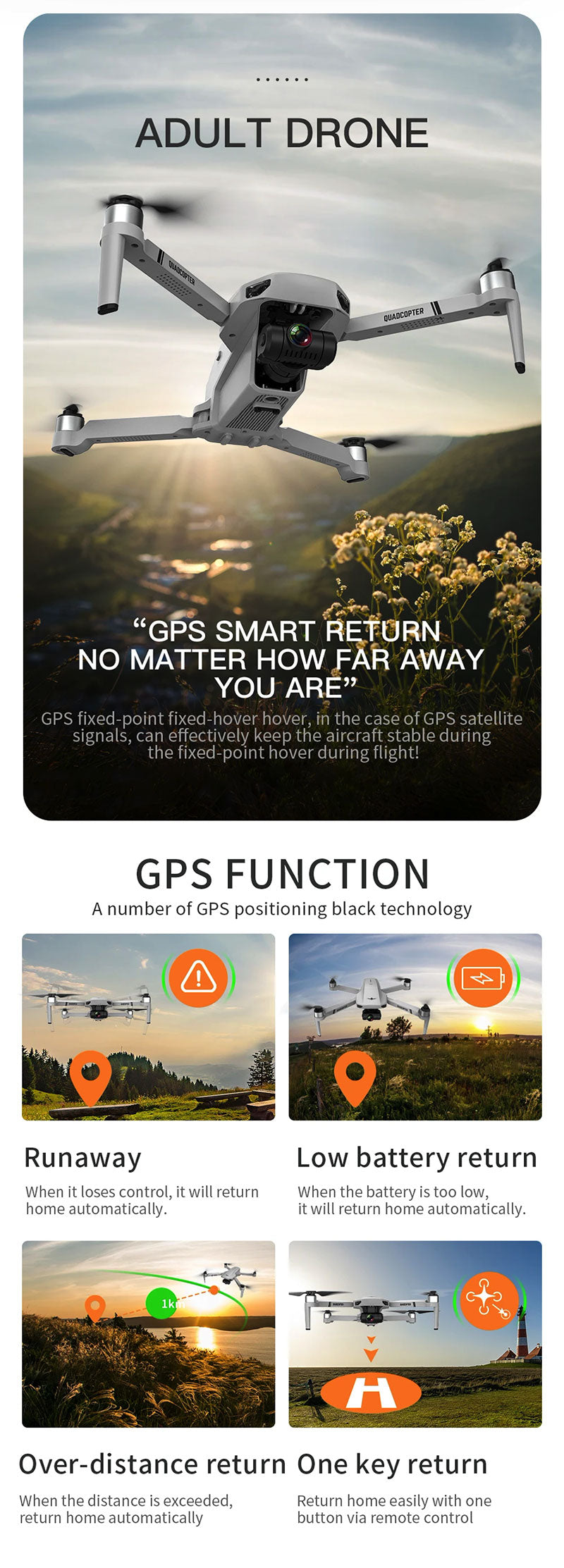 3.  KF102 GPS Smart following: After the plane left the GPS, it will open the APP following function, and the plane will follow the mobile phone. In addition, Image Following: Detect the shooting object and follow the flight automatically.