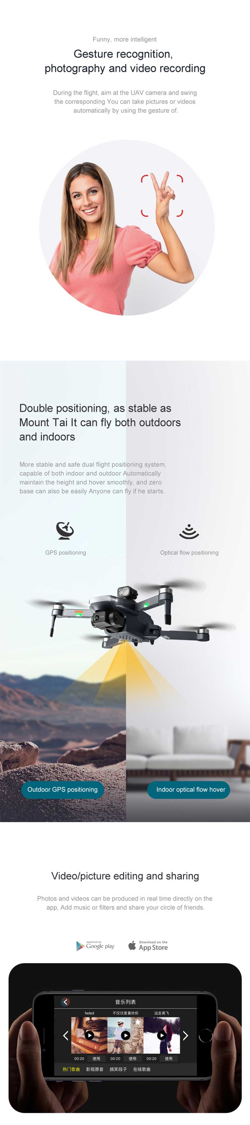 2. ① GPS smart follow: After the aircraft is connected to the GPS, turn on the APP follow function, and the aircraft will follow the mobile phone.