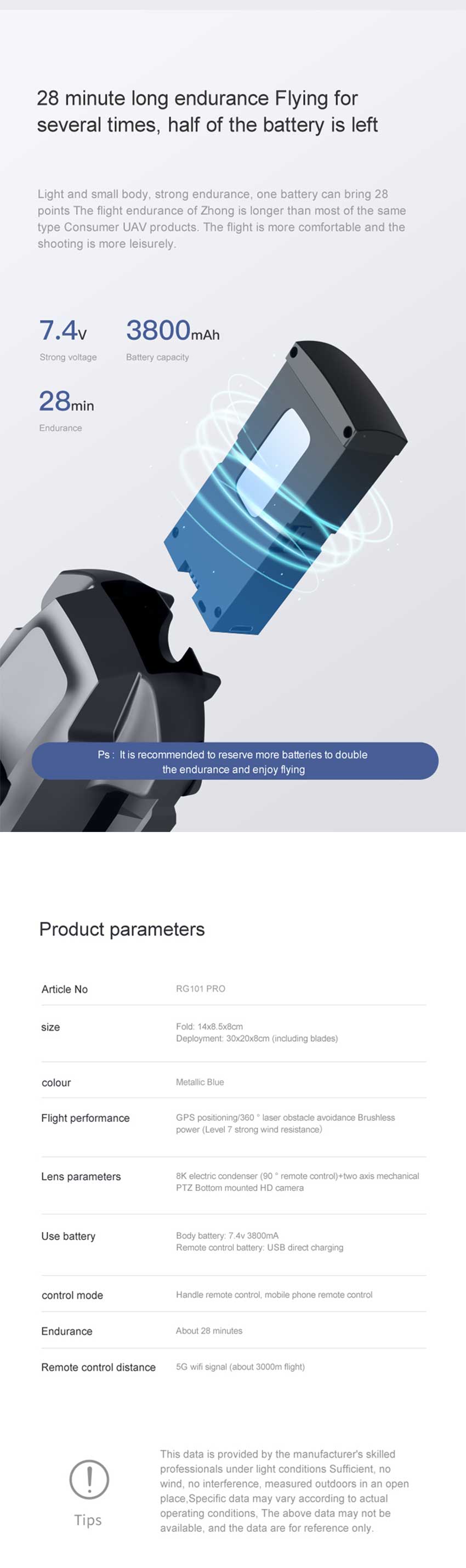 • Capacity of smart lithium battery: 7.4V 3800mAh