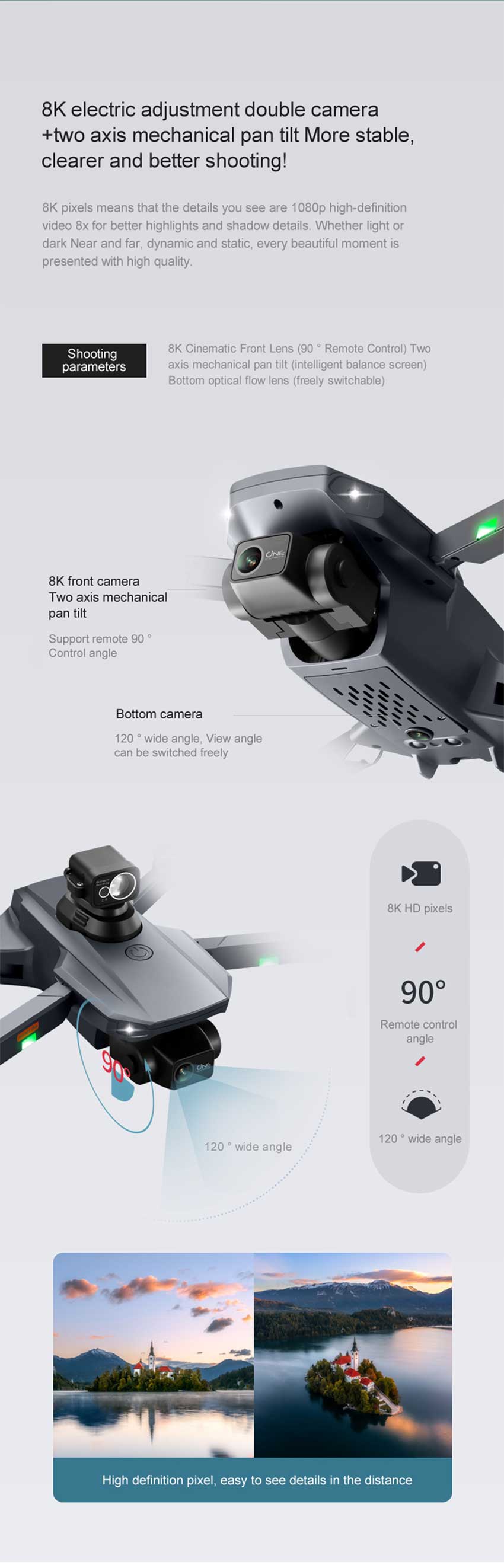 • Product configuration parameters: 8K Drone 2-Axis Mechanical Gimbal