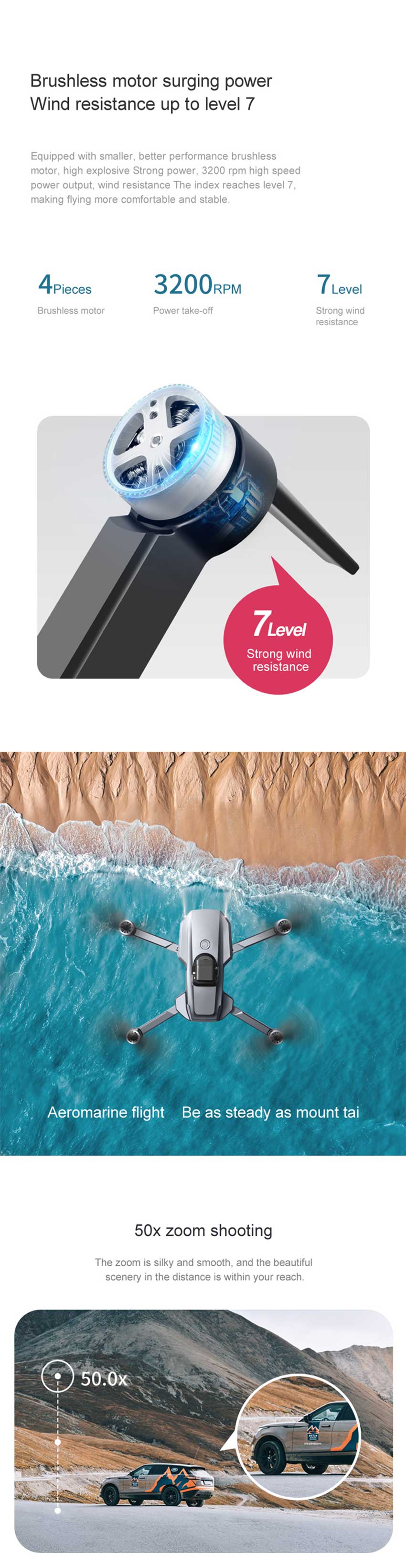 • Aerial camera configuration parameters: optical flow positioning, wide-angle camera, trajectory flight, fixed-point surround, adjustable lens angle 90°, GPS/GLONASS double mode