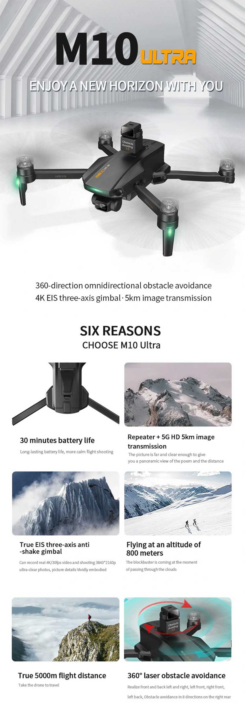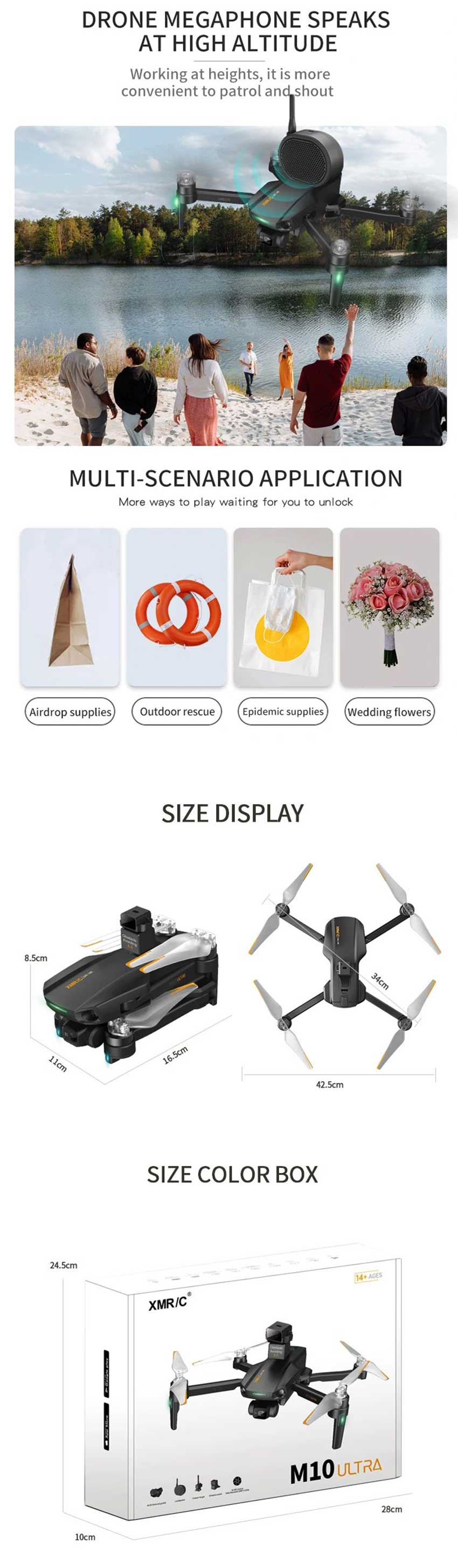 RC Drone XMR/C M10 Ultra 4K 3-Axis EIS Gimbal 360° Obstacle Avoidance 5G WIFI GPS 5KM FPV Brushless Foldable Quadcopter