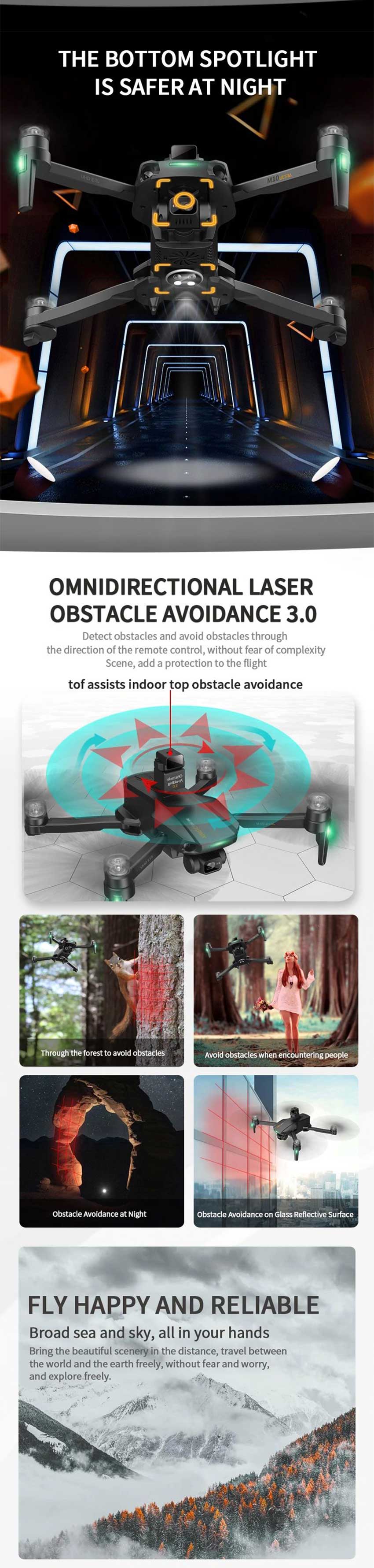 • Obstacle avoidance detection range: Front and back left and right, left front right front left rear right back, up and down