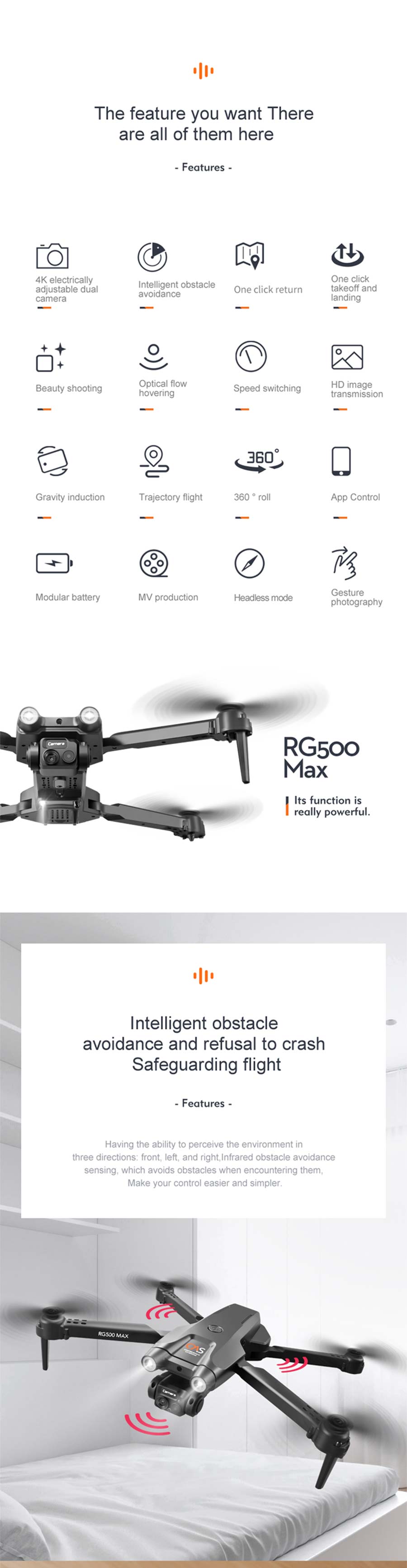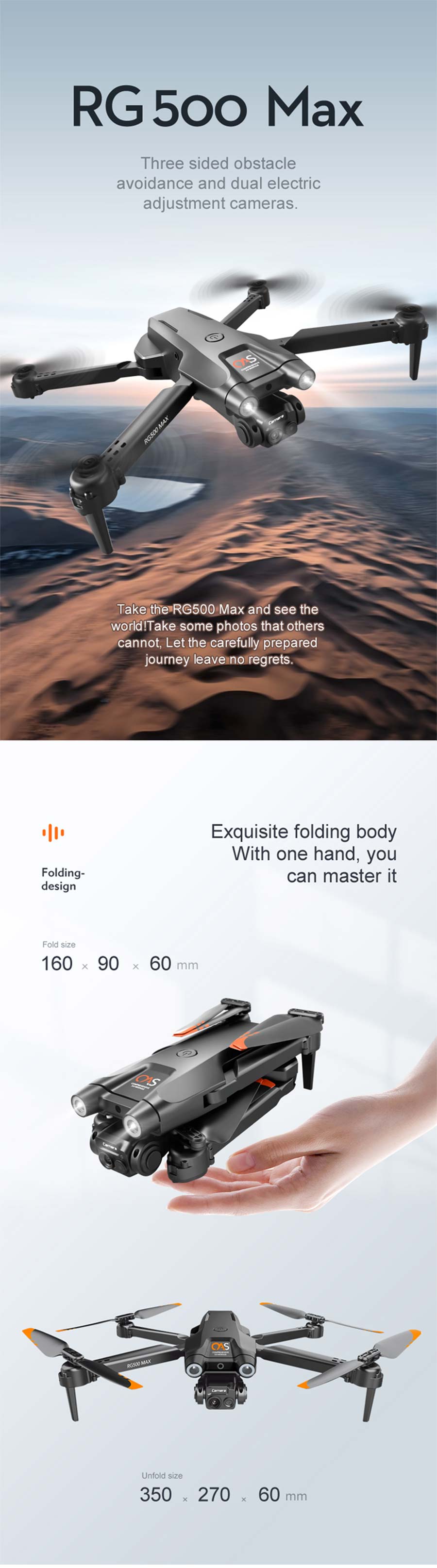 RG500 MAX RC Drone Brushless 4K Camera ESC WIFI FPV Three-Sided Obstacle Avoidance Folding Quadcopter