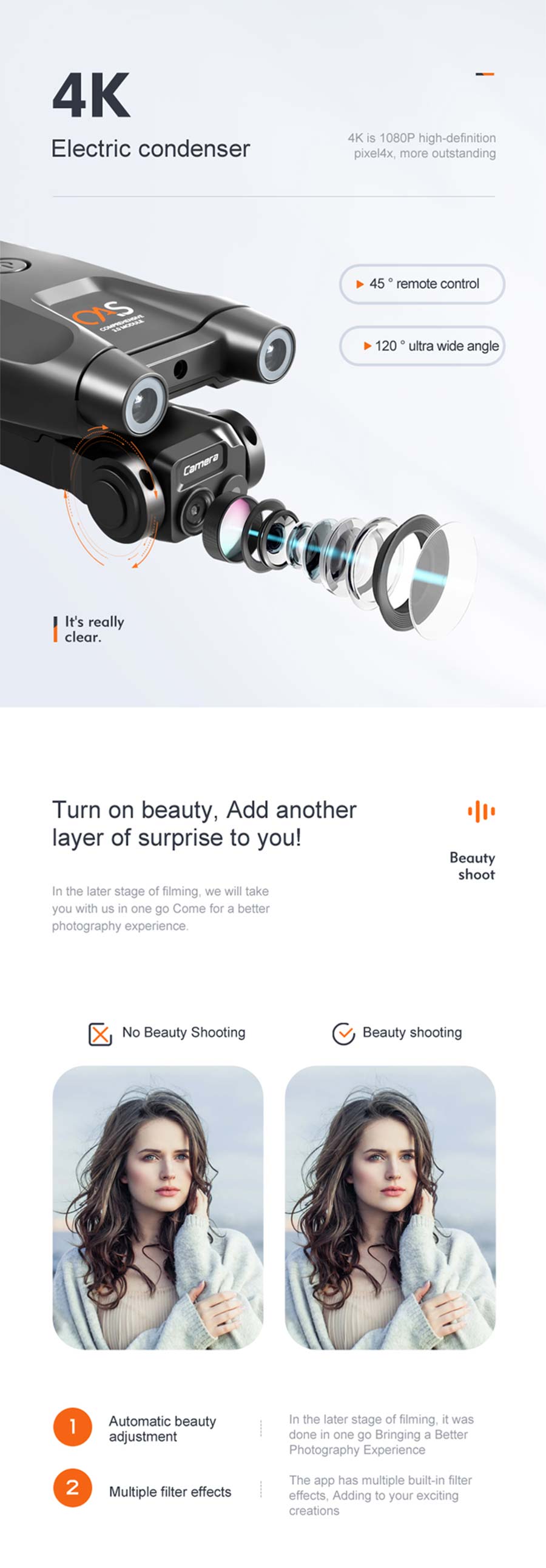 4. MV function: filters, video effects, add background music, picture/video sharing