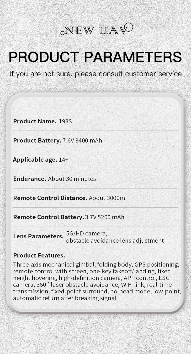 ZLL 193S 4K Drone 3-Axis Gimbal EIS Camera Laser Obstacle Avoidance 5G GPS Quadcopter with Touch Screen Remote Control