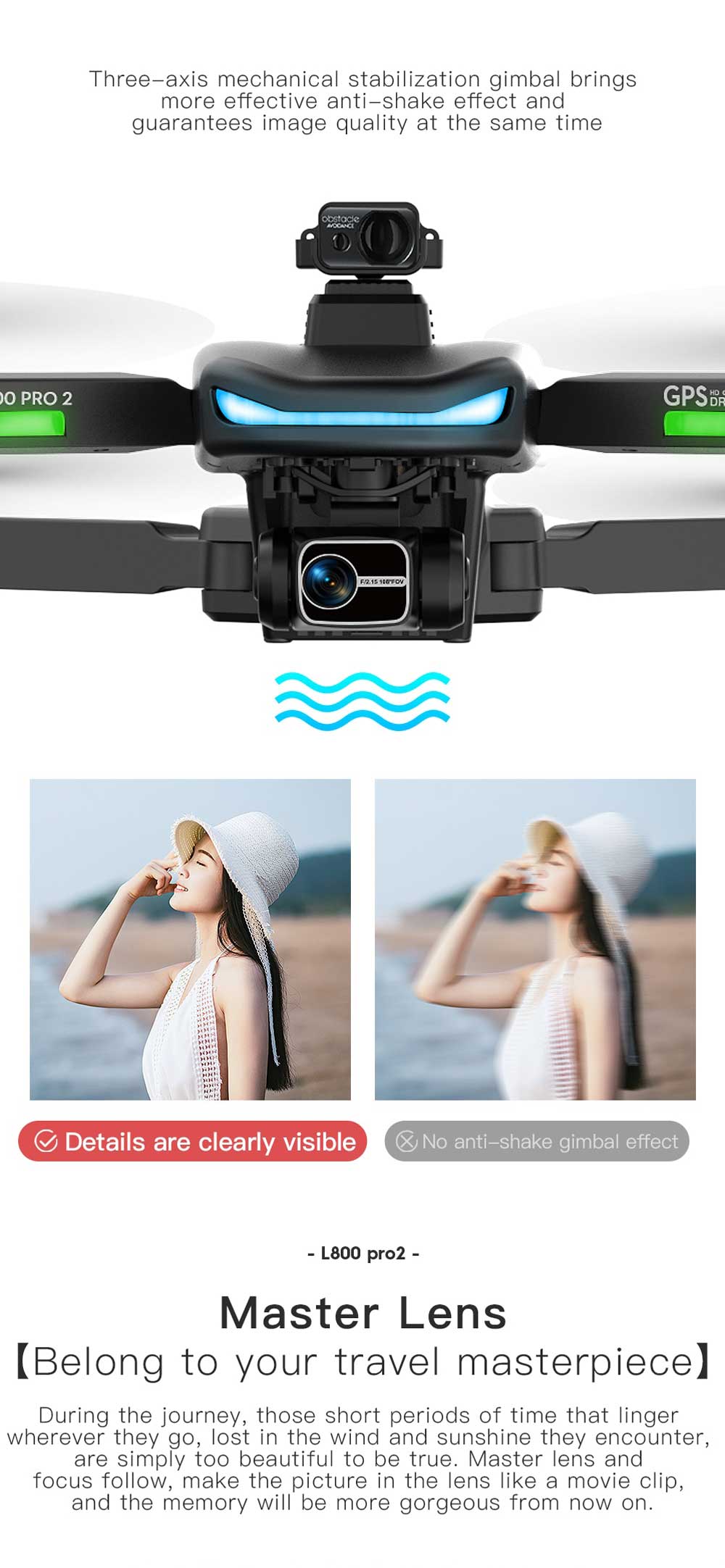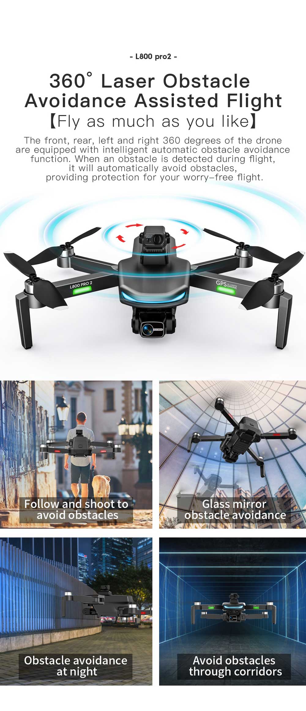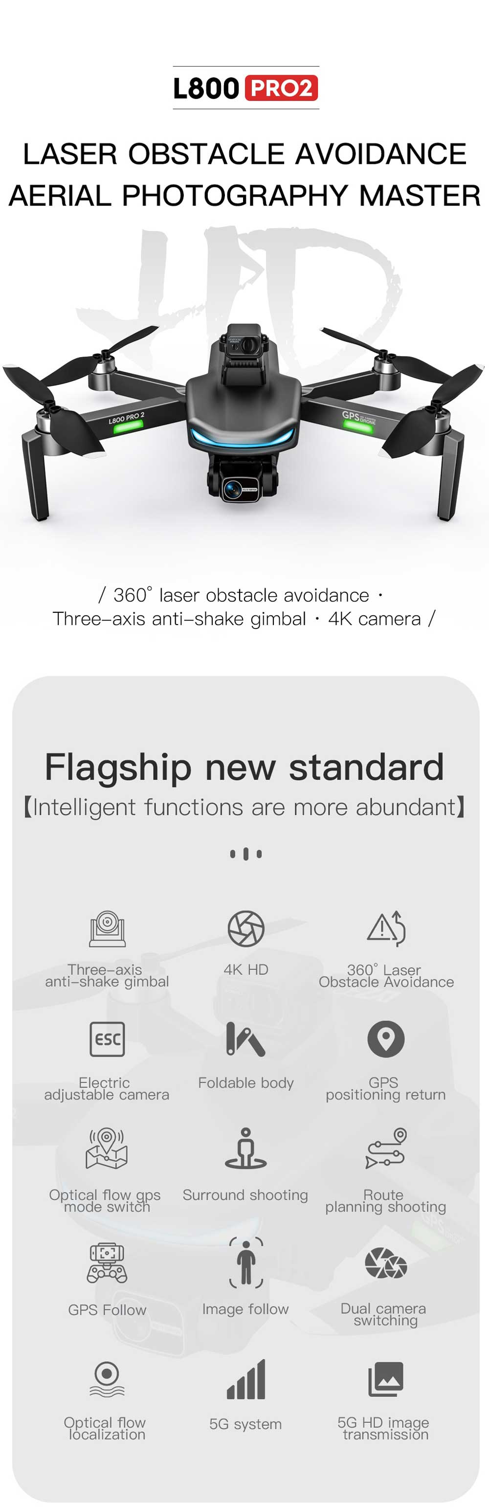 4K Drone 3-Axis Gimbal L800 Pro2 GPS Dual HD Drones 360° Obstacle Avoidance 5G WiFi RC Quadcopter