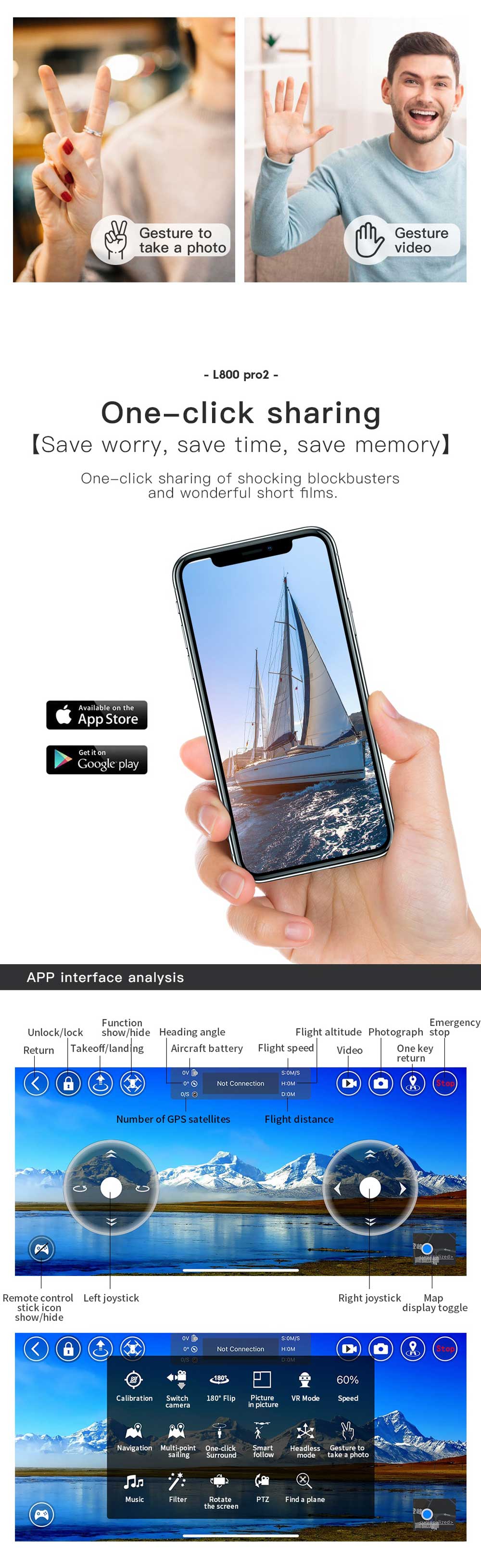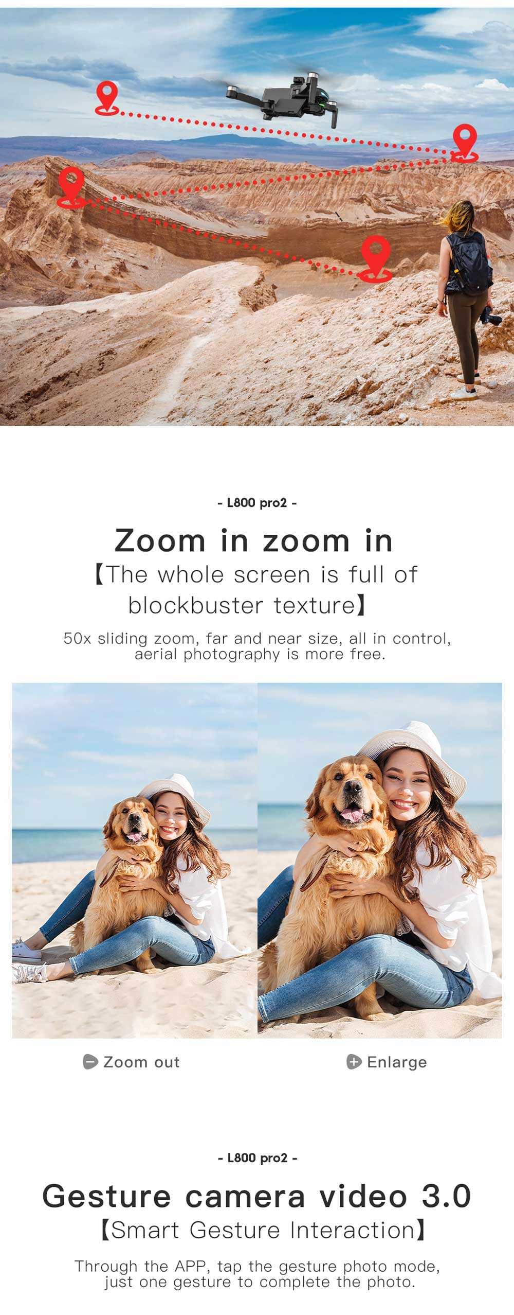 2. (1) GPS intelligent follow; (2) image following: identify the subject and automatically follow the flight