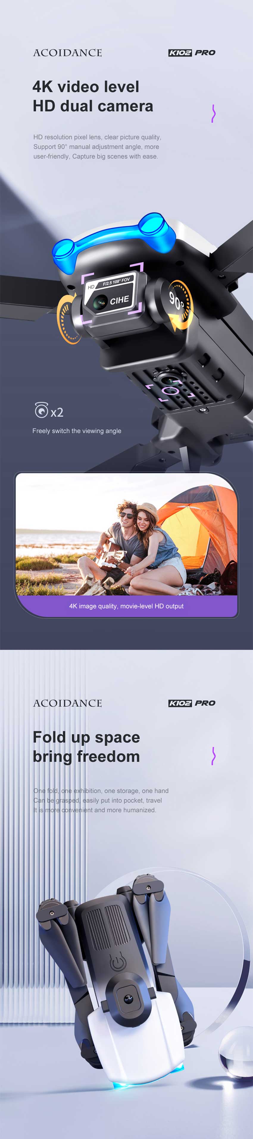 4K Drone K102 PRO Optical Flow Localization Omnidirectional Obstacle Avoidance Dual Camera GPS 5G Wifi Foldable Quadcopter