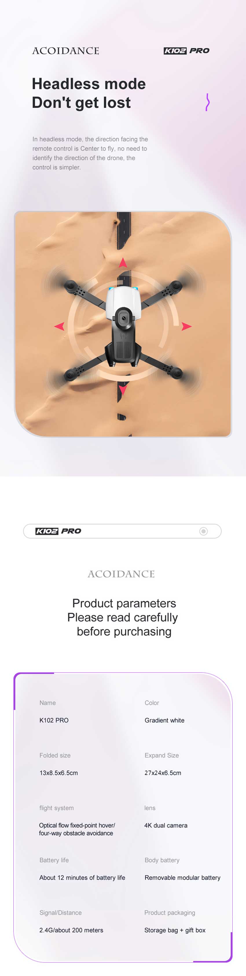 • Product configuration parameters: 4K dual camera/optical flow positioning