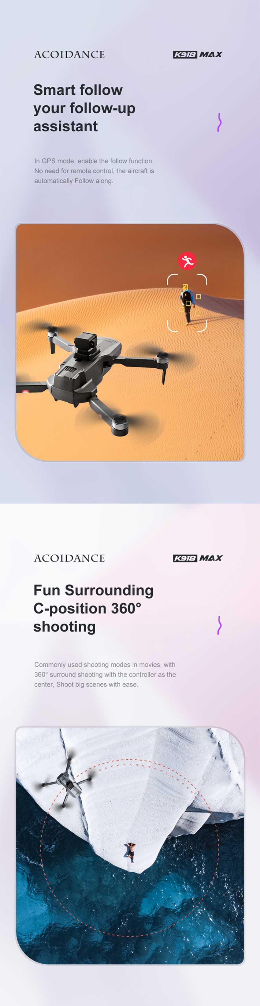 - Aerial photo app function: Follow, surround, multi-point cruise, VR mode, multi lens switching, panoramic photography / video recording, lens zoom, MV mode, one button return, headless mode, definition switching, gesture photography / video recording, front lens up and down adjustment