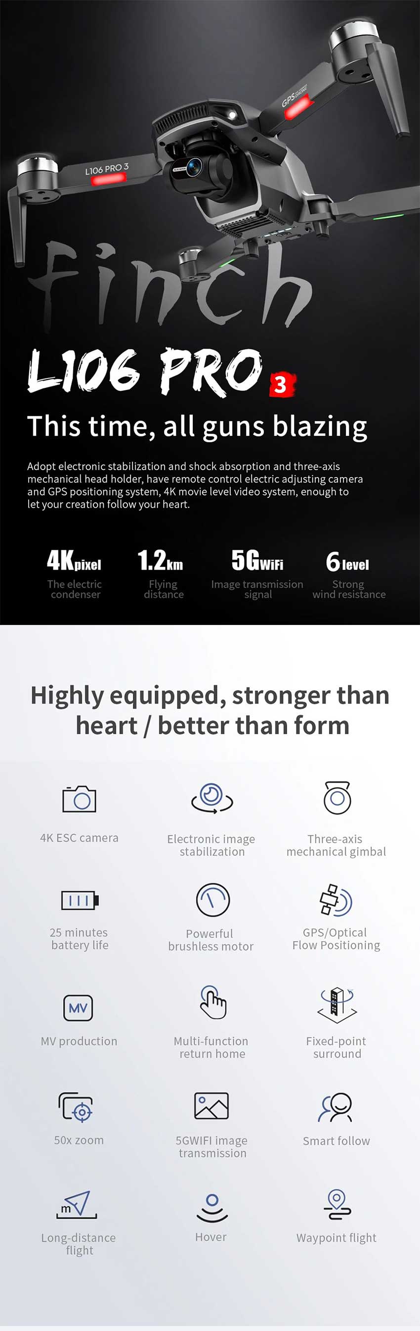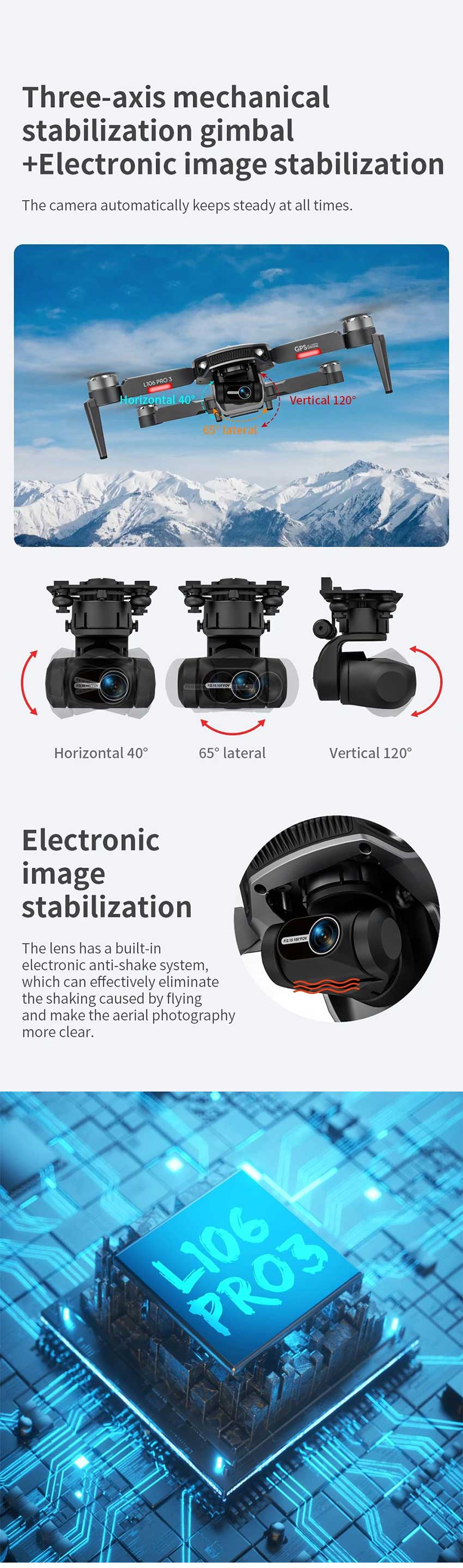 4K Drone L106 PRO3 3-Axis Gimbal EIS Camera GPS 5G 1.2KM FPV 25mins Brushless Quadcopter