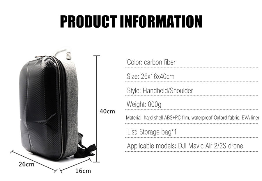 2. Simple design and quality: This Drone Storage bag Tailor-made for DJl Mavic Air 2S, it is simple and fashionable, resistant to pressure and wear, and more practical and convenient.
