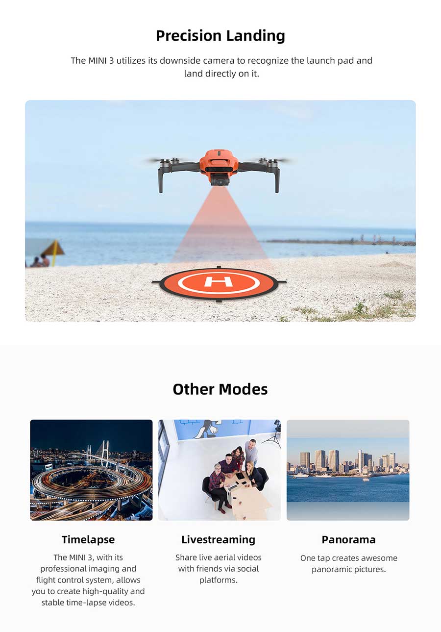 FIMI X8 MINI 3 Max Hovering Time: 29 minutes *Measured with the aircraft hovering in windless conditions, with visuaand recording modes turned off, at sea level until the remaining battery level reaches0%. This is for reference only; please pay attention to app prompts during actual flight