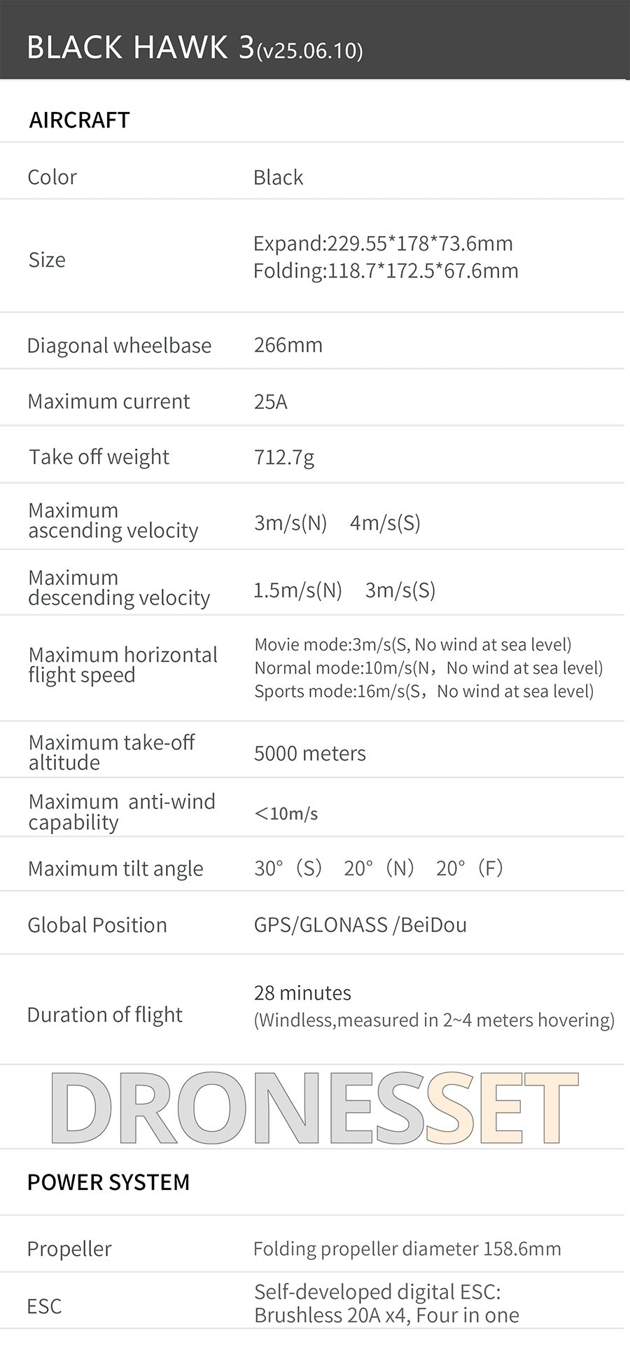 Basic flight mode: Wind resistance mode/Sports mode/Normal mode
