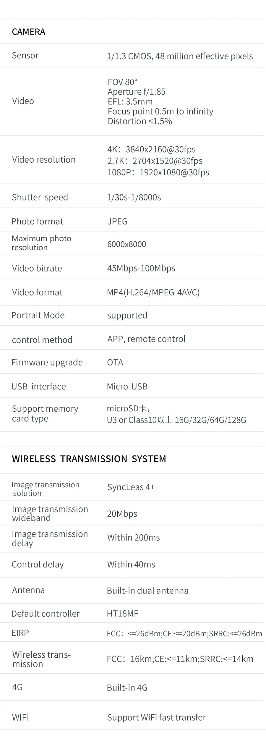 Video resolution: 4K: 3840x2160@30fps; 2.7K: 2704x1520@30fps; 1080P: 1920x1080@30fps