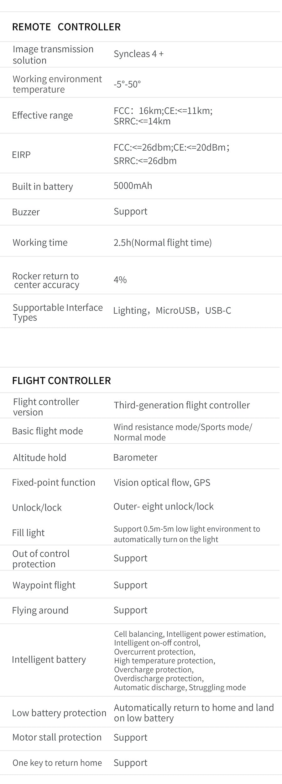 Downward: Downward Vision, Tof Precision Measurement range:0.3-5m, Deviation value<0.1m