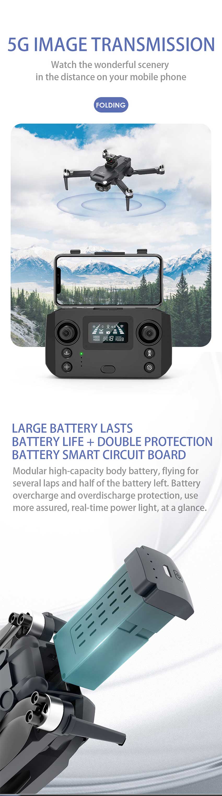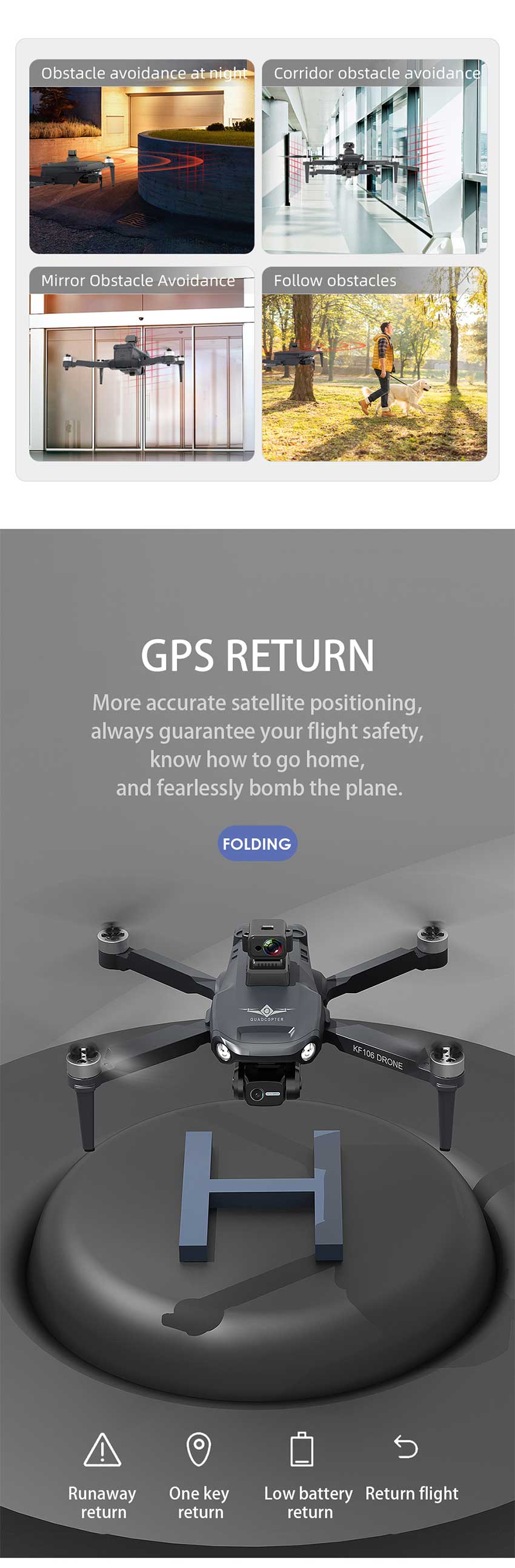 2. KF106 MAX GPS one key to return to the take-off point, return home with low power, return home without signal
