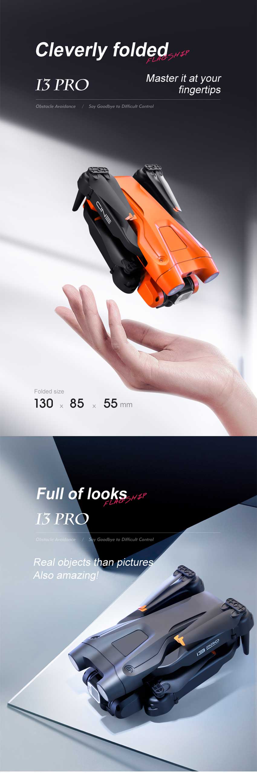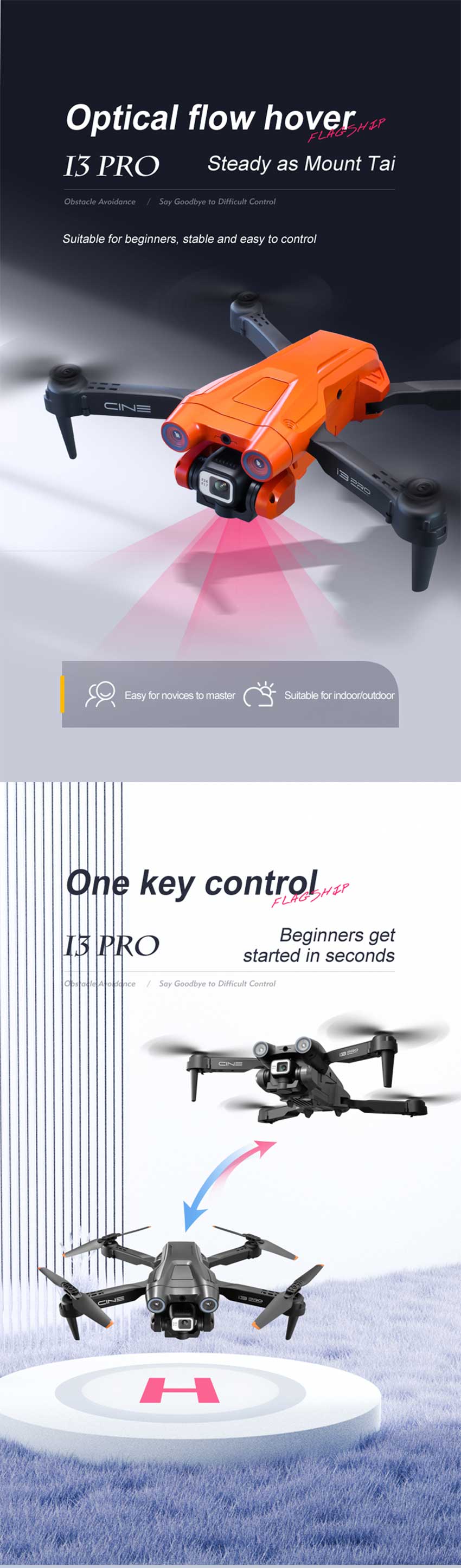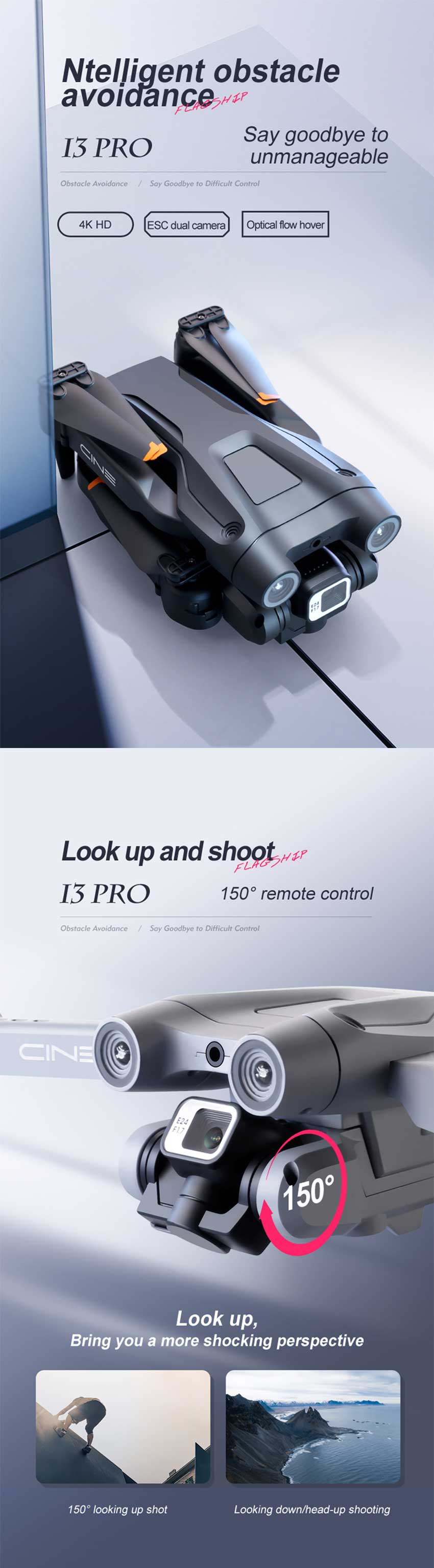 - Features: Drone is equipped with front left and right three-way intelligent obstacle avoidance