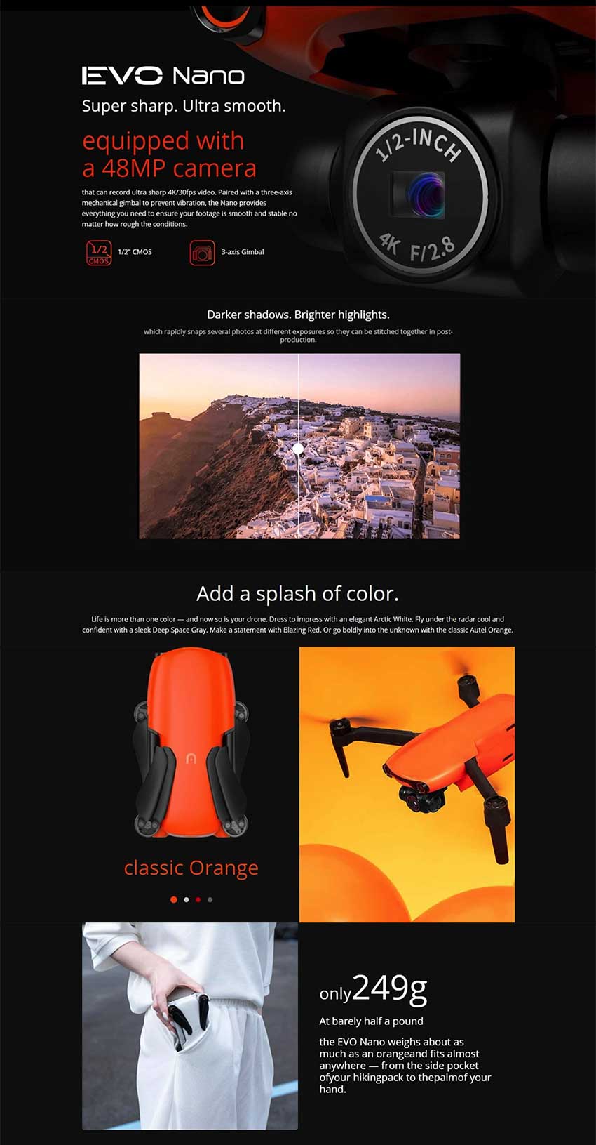 Autel EVO Nano+ with 0.8' CMOS / RYYB Sensor / 2.44um / PDAF+CDAF
