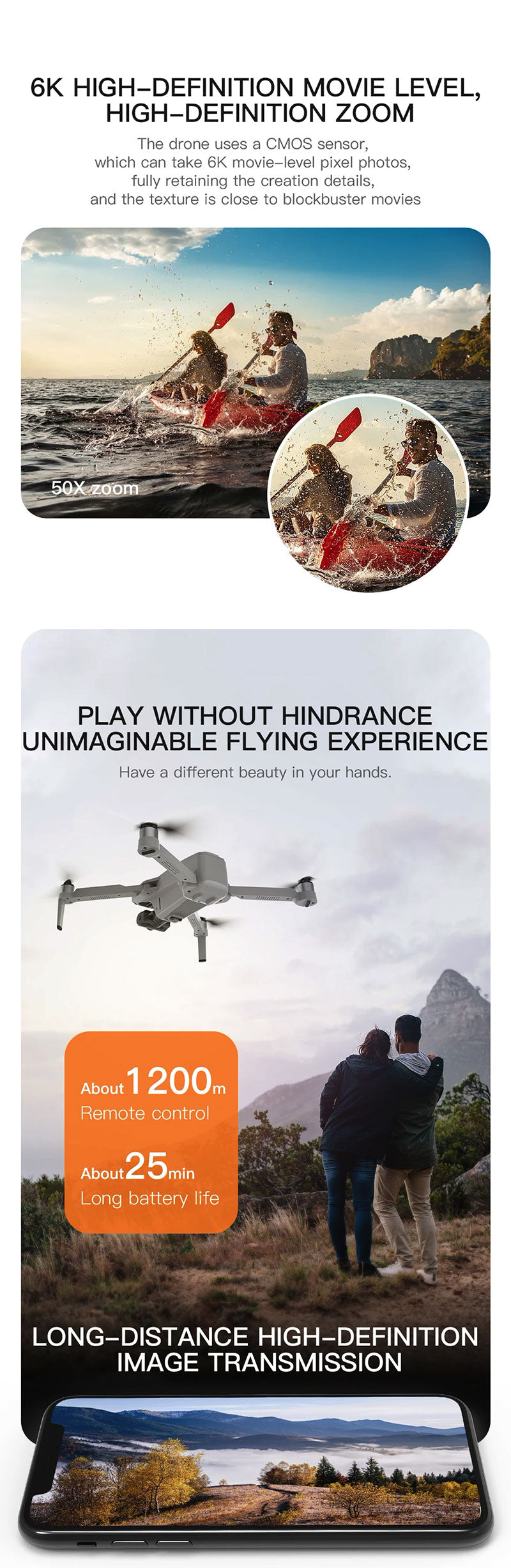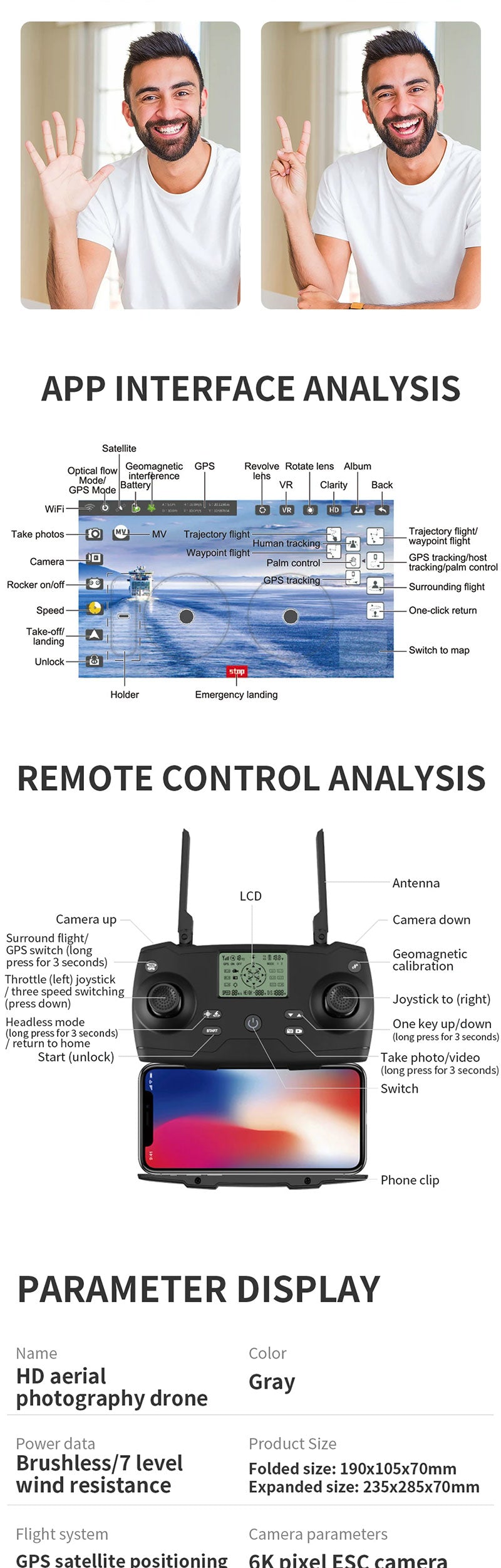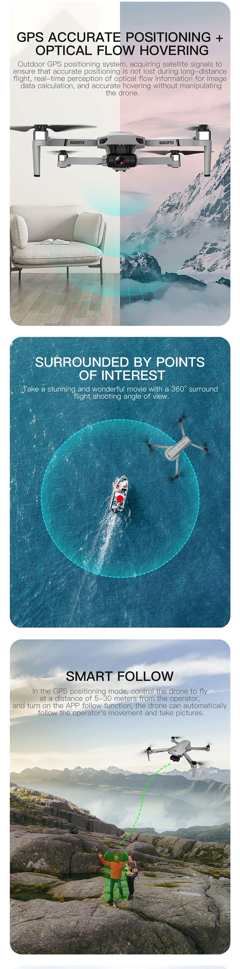 3. KF102 GPS Smart following: After the plane left the GPS, it will open the APP following function, and the plane will follow the mobile phone. In addition, Image Following: Detect the shooting object and follow the flight automatically.