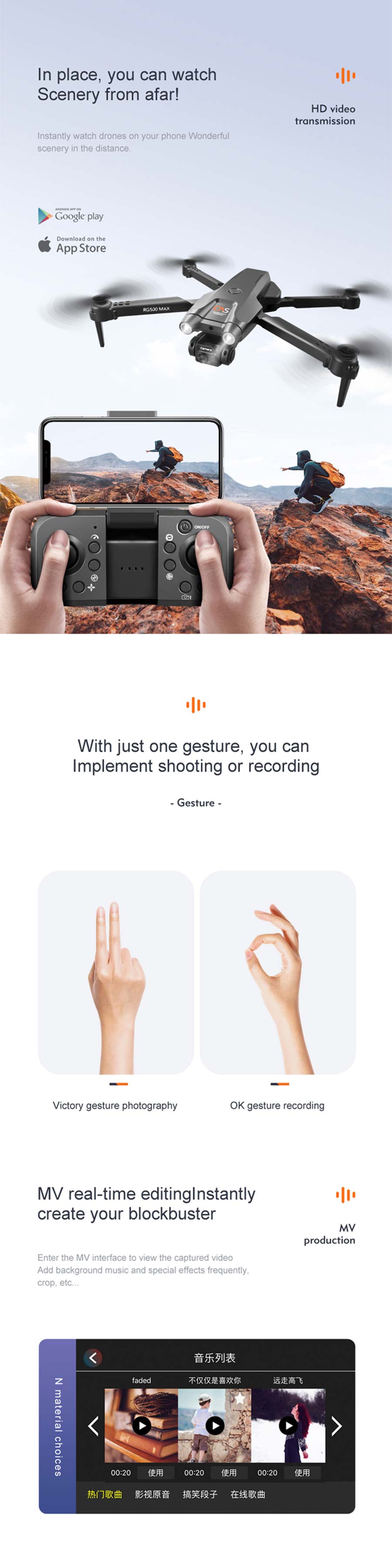 4. MV function: filters, video effects, add background music, picture/video sharing