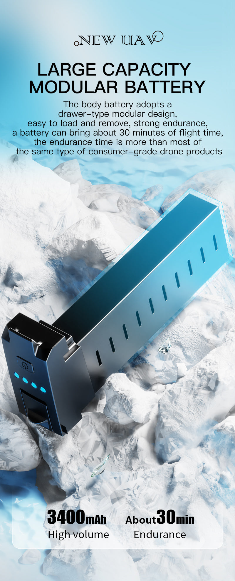 Intelligent lithium battery capacity of drone: 7.6V/3400mAh