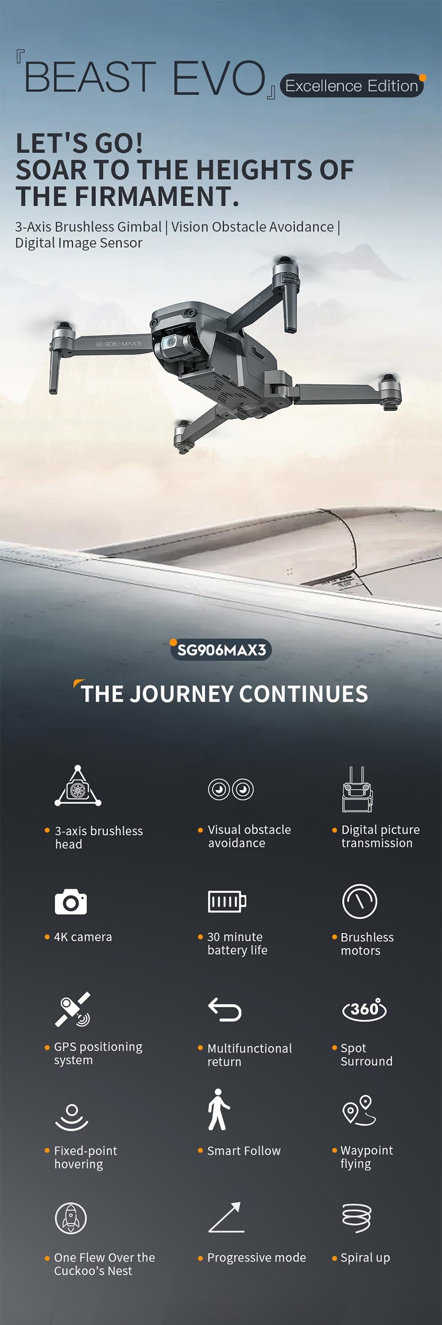 ZLL Beast EVO SG906 MAX3 RC Drone Upgrade Visual Obstacle Avoidance 3-Axis Gimbal 4K Camera GPS 5G WIFI Professional Quadcopter